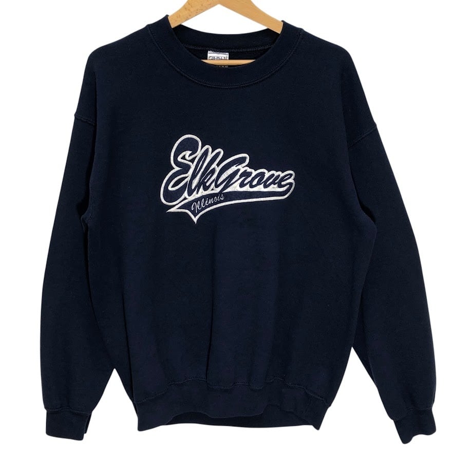 00's vintage 00年代 ヴィンテージ GILDAN ギルダン HEAVY BLEND ヘビーブレンド Elk Grove エルクグローブ スウェット トレーナー 長袖 フロント刺繡 クルーネック Mexico製 Mサイズ ネイビー