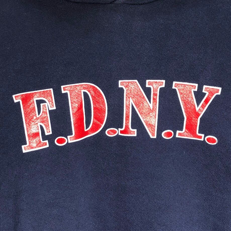 商品名:90's vintage 90年代 ヴィンテージ Lee リー F.D.N.Y ニューヨーク市消防局 パーカー フーディー プルオーバー 長袖 フロントプリント Mexico製 Mサイズ ネイビー