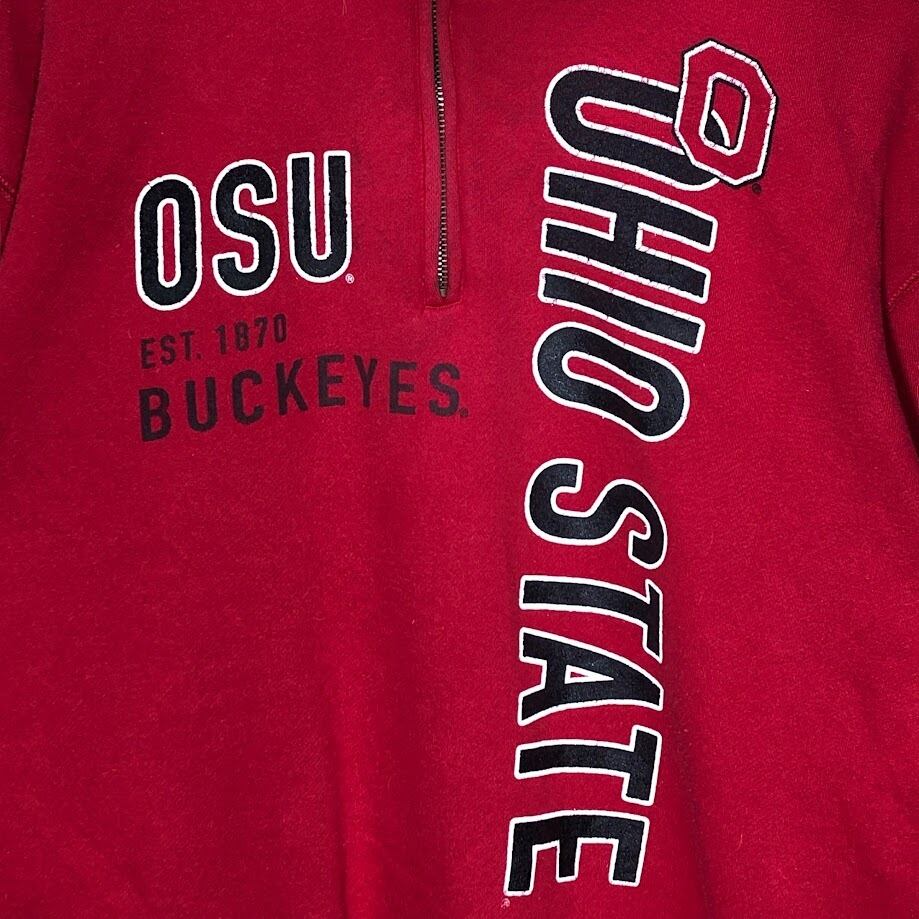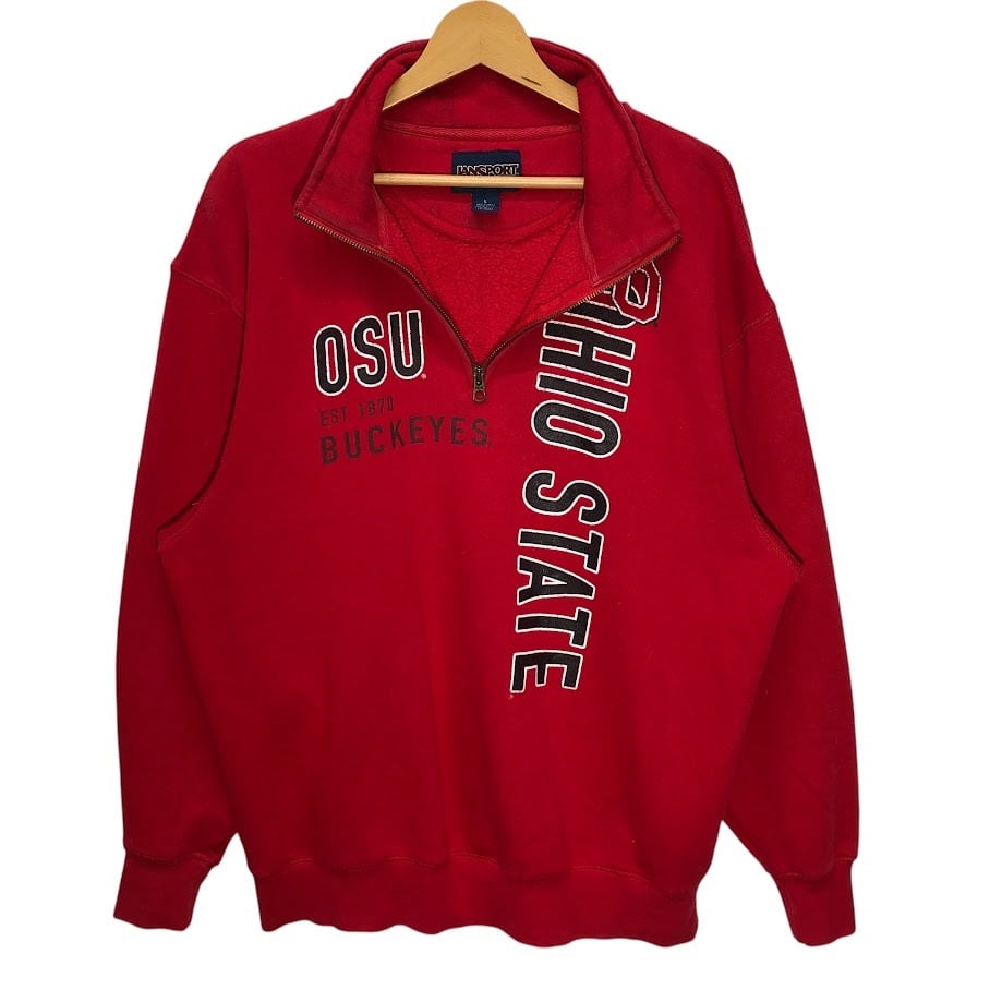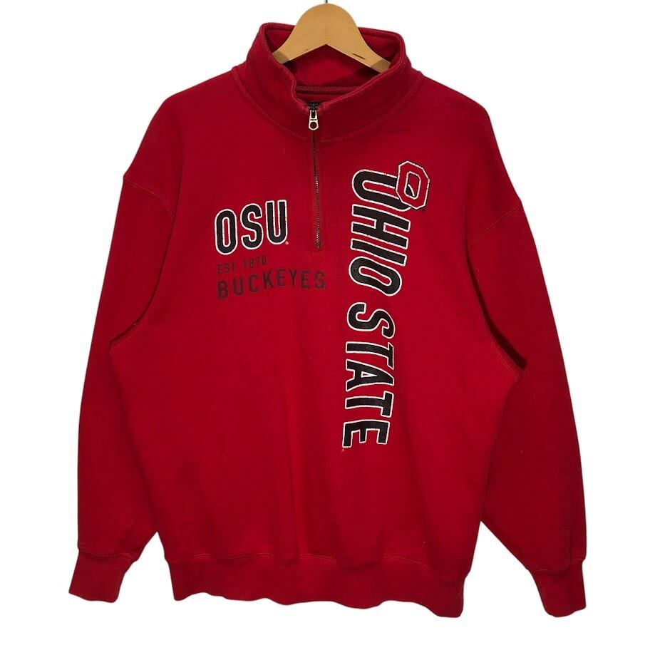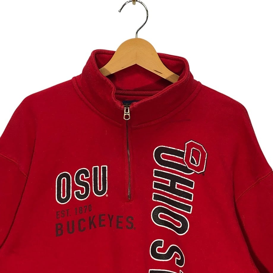 JAN SPORT ジャンスポーツ カレッジ刺繡 OHIO STATE ハーフジップ スウェット トレーナー 長袖 フロントプリント カンボジア製 Lサイズ レッド