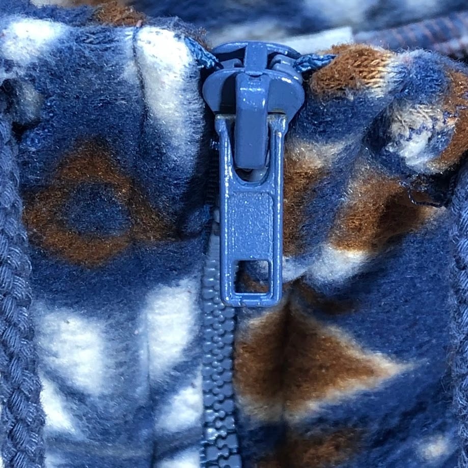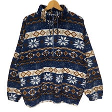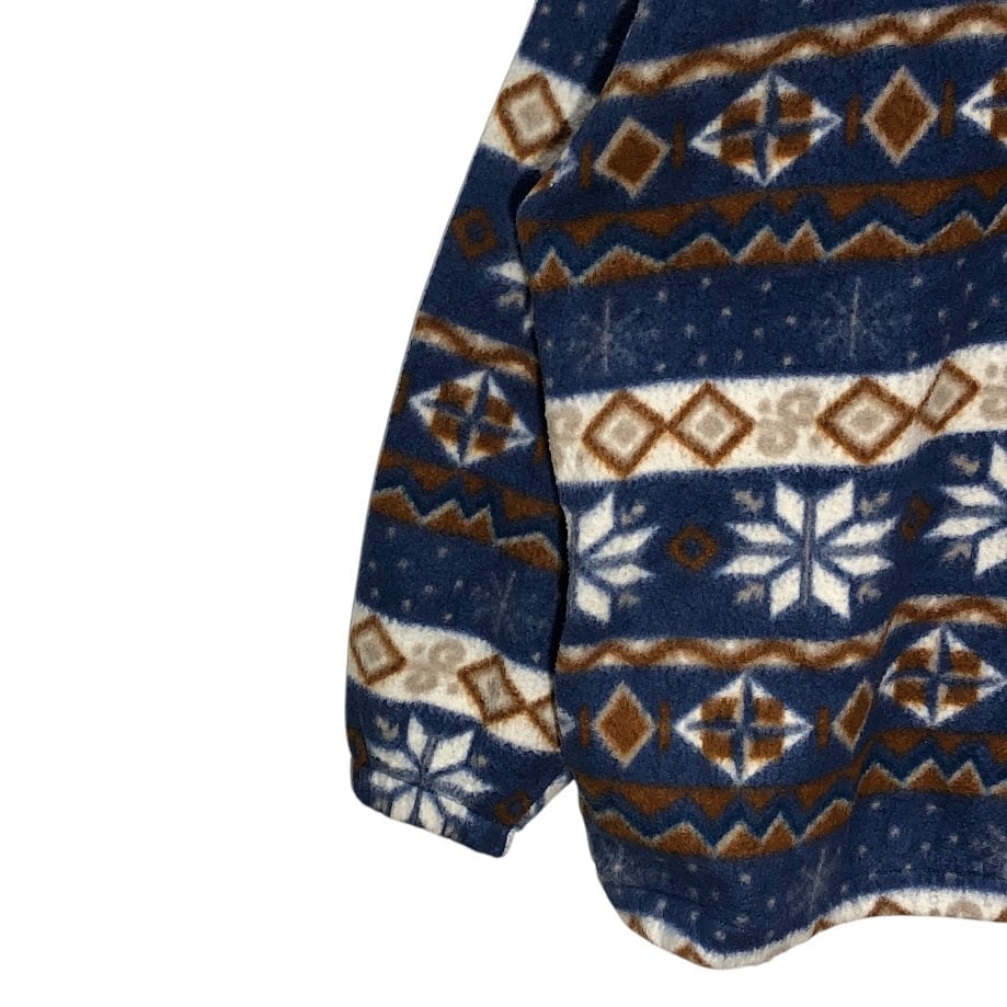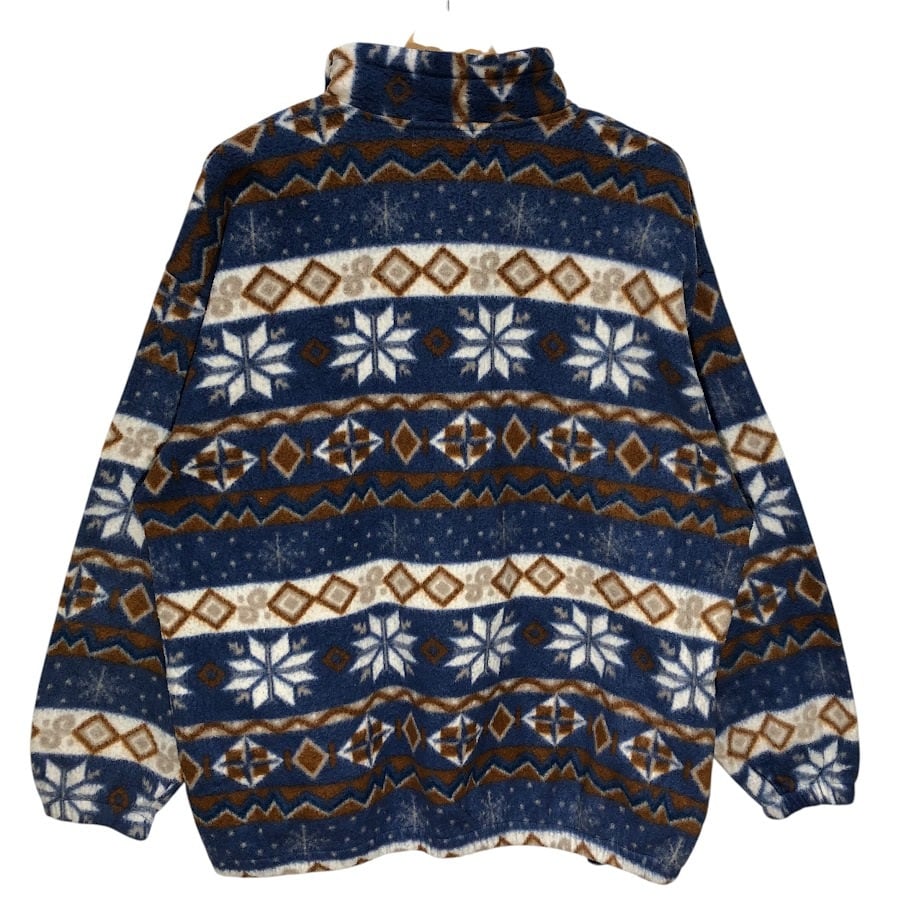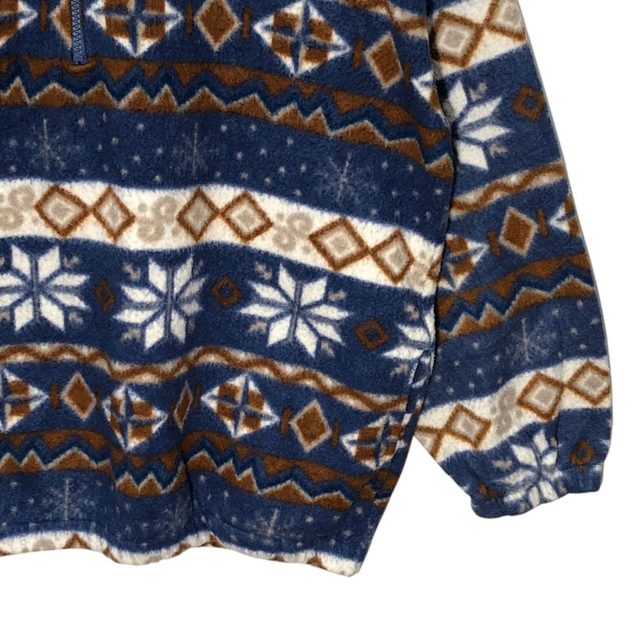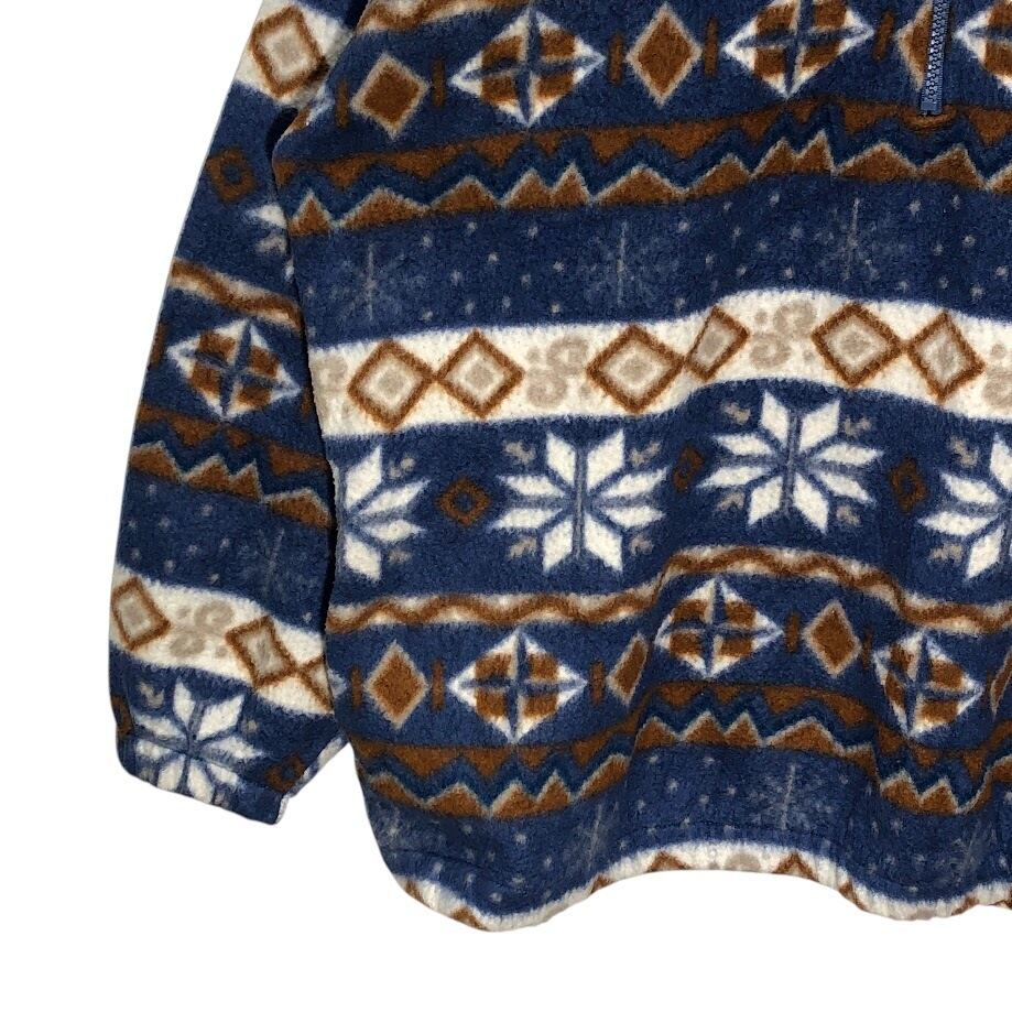 商品名:90's vintage 90年代 ヴィンテージ JENNIFER MOORE ACTIVE WEAR ジェニファー・ムーア ハーフジップ フリースプルオーバー 総柄 長袖 ブルー ブラウン ホワイト