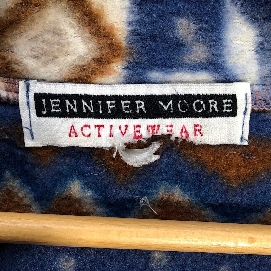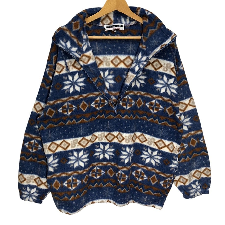 90's vintage 90年代 ヴィンテージ JENNIFER MOORE ACTIVE WEAR ジェニファー・ムーア ハーフジップ フリースプルオーバー 総柄 長袖 ブルー ブラウン ホワイト
