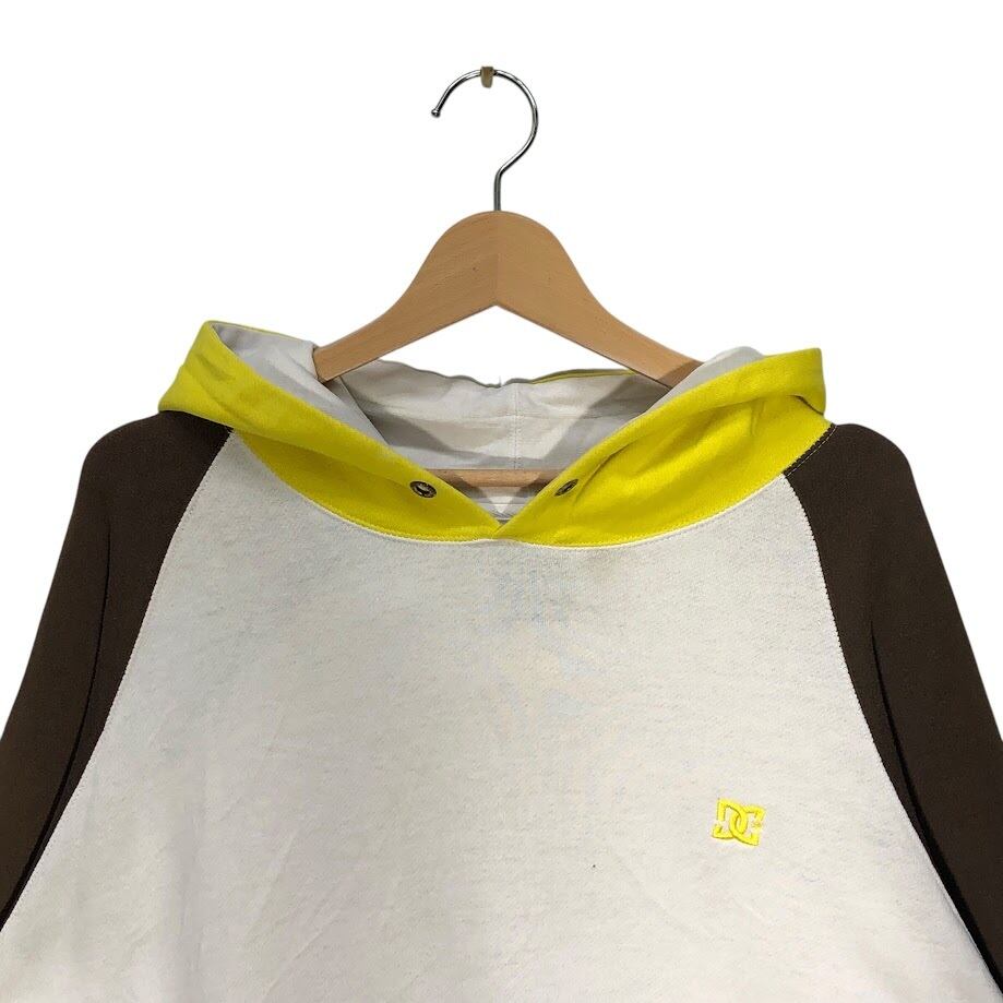 DC SHOES ディーシーシューズ パーカー フーディー プルオーバー 長袖 ワンポイント刺繡 オーバーサイズ ビッグシルエット China製 Lサイズ ホワイト ブラウン イエロー