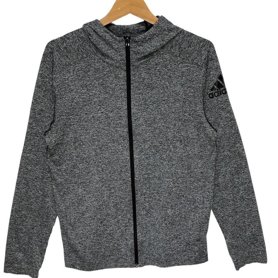 商品名:adidas/アディダス フルジップ ジップアップ パーカー フーディー 長袖 袖プリント ジャージ Vietnam製 グレー
