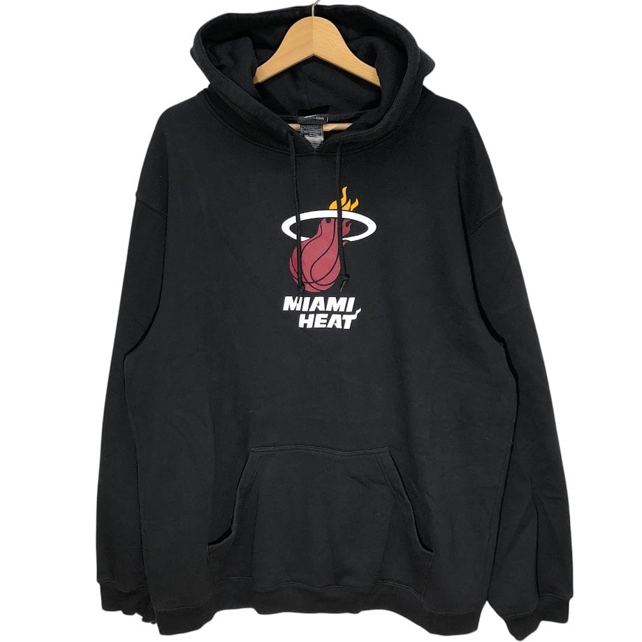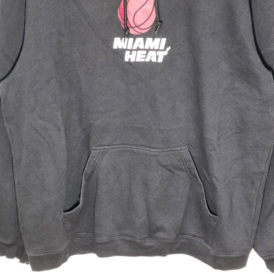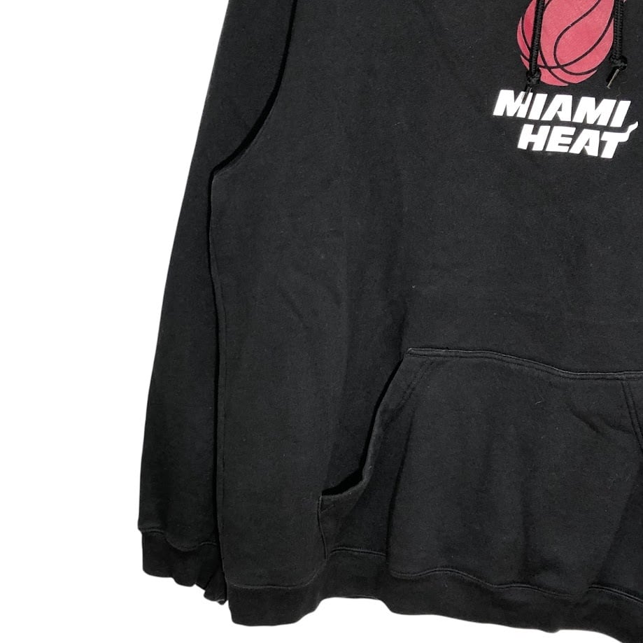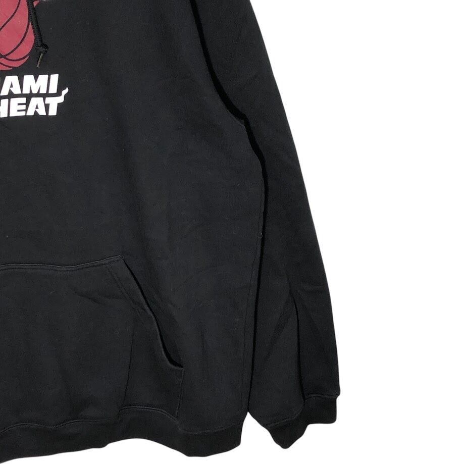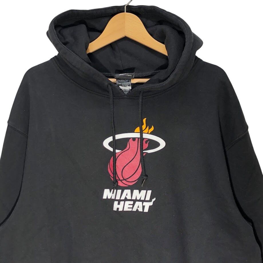adidas/アディダス NBA MIAMI HEAT マイアミヒート バスケットボール チーム スポーツ パーカー フーディー プルオーバー 長袖 フロントプリント 袖刺繡 ワンポイント刺繡 オーバーサイズ INDNESIA製 2XLサイズ ブラック