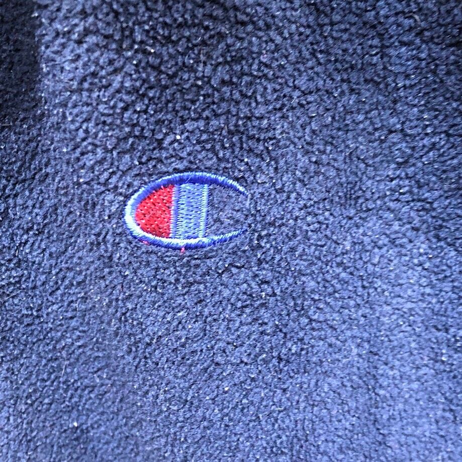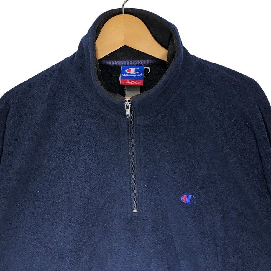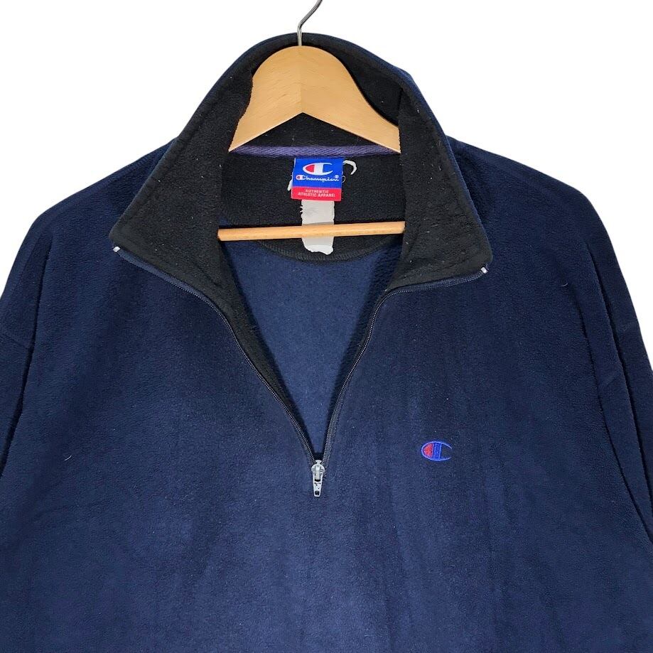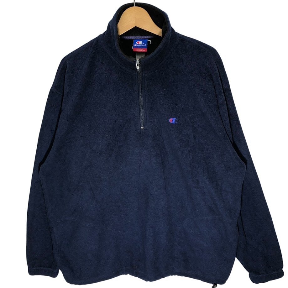 Champion /チャンピオン フリースプルオーバーハーフジップ 長袖 ドローコード ワンポイント刺繡 オーバーサイズ ビッグシルエット ネイビー
