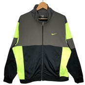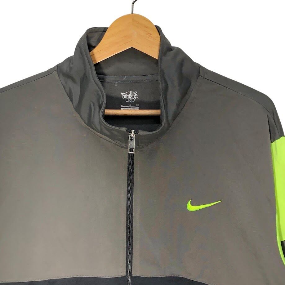 NIKE/ナイキ フルジップ ジップアップ ライトアウター 長袖 ワンポイント刺繡 トラックジャケット ジャージ INDONESIA製 XLサイズ グレー/ブラック/イエロー