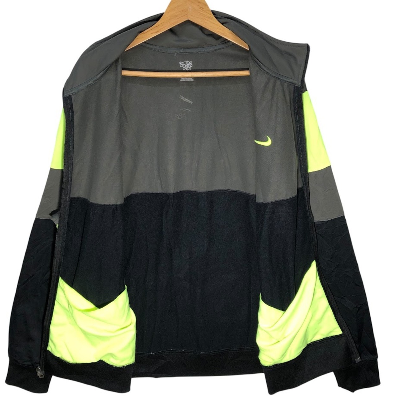 商品名:NIKE/ナイキ フルジップ ジップアップ ライトアウター 長袖 ワンポイント刺繡 トラックジャケット ジャージ INDONESIA製 XLサイズ グレー/ブラック/イエロー