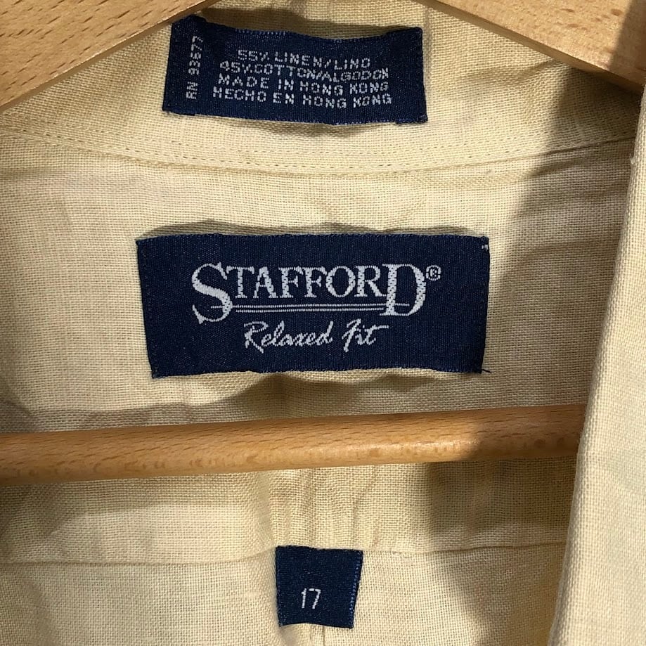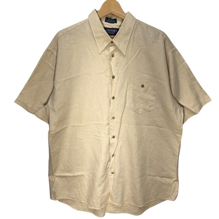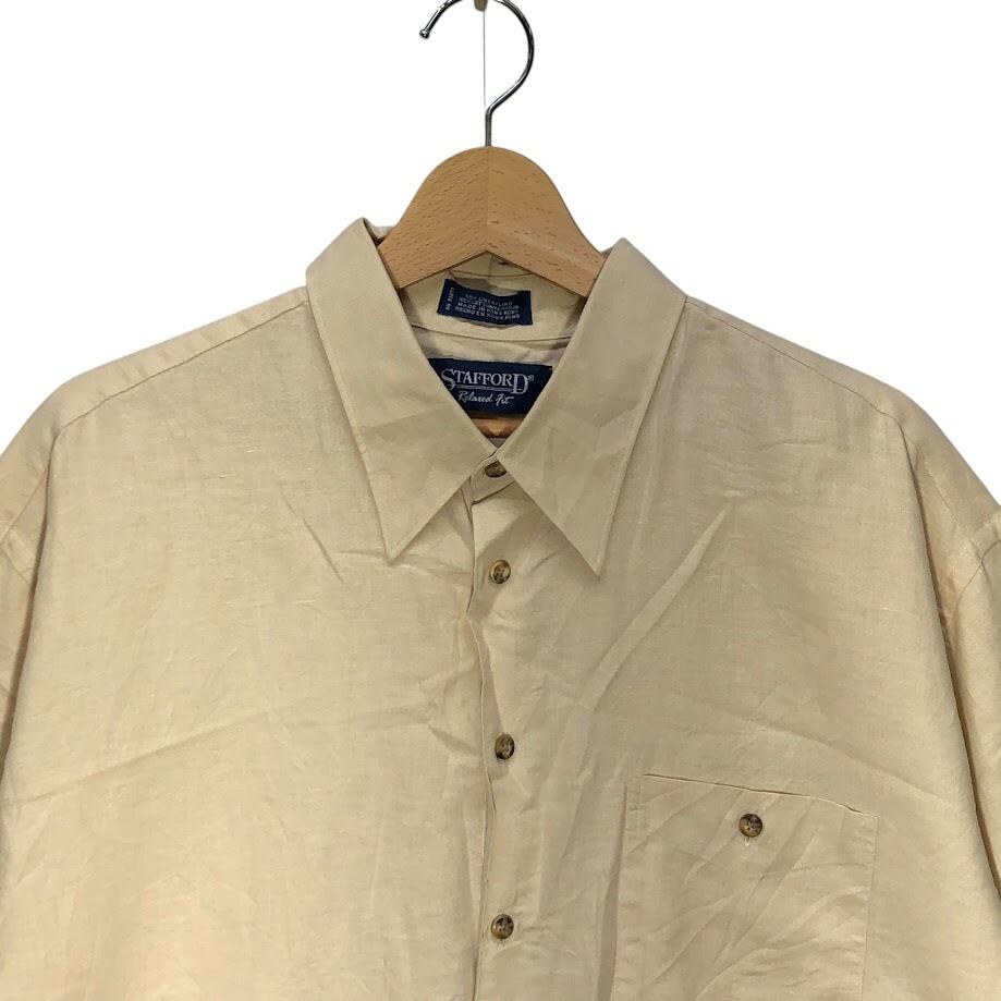 STAFFORD リネンシャツ アロハシャツ 半袖シャツ ボタンダウン HongKong製 17サイズ ベージュ イエロー