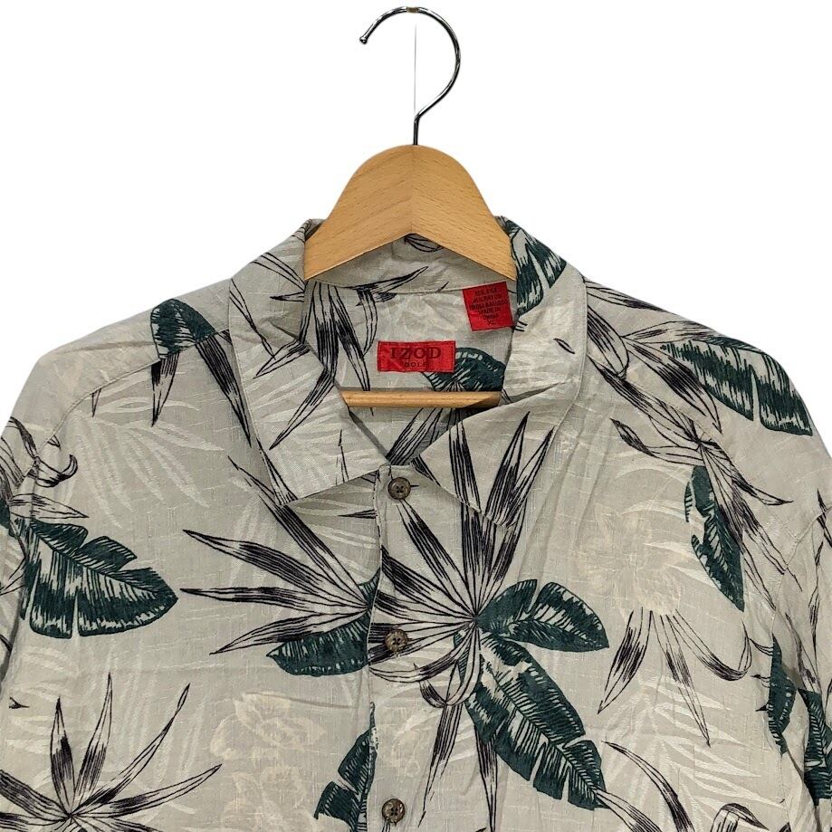 IZOD GOLF アイゾッドゴルフ アロハシャツ 総柄 シルクシャツ レーヨンシャツ 半袖シャツ ボタンダウン China製 XLサイズ グレー グリーン