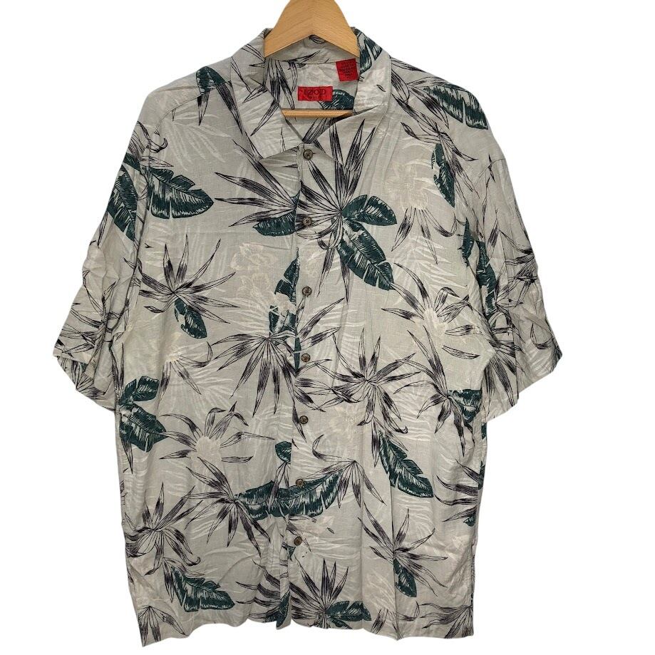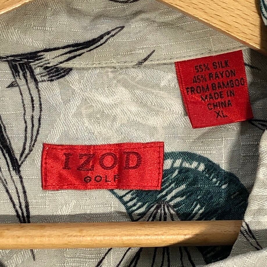商品名:IZOD GOLF アイゾッドゴルフ アロハシャツ 総柄 シルクシャツ レーヨンシャツ 半袖シャツ ボタンダウン China製 XLサイズ グレー グリーン