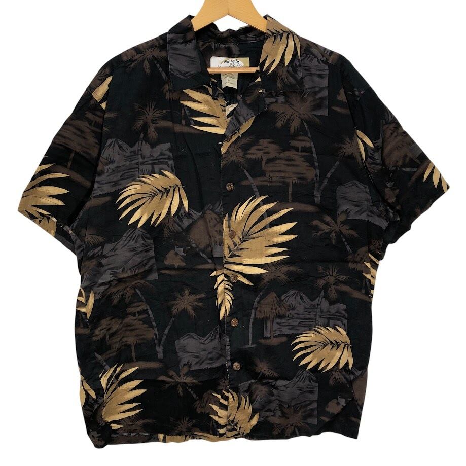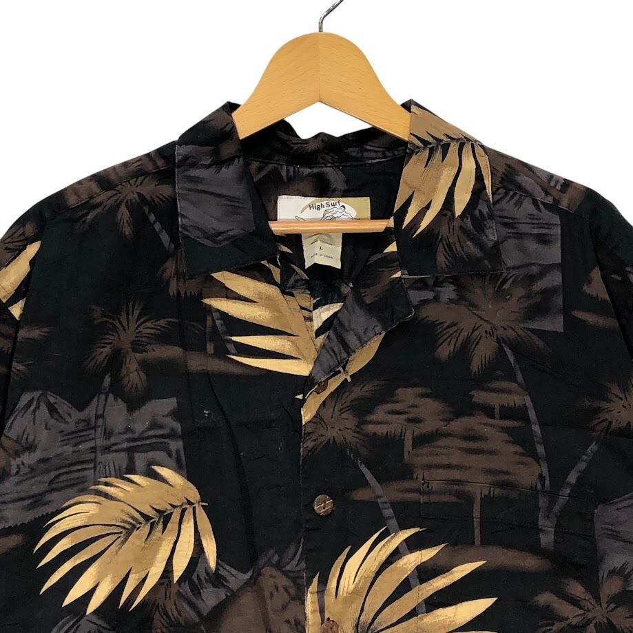 High Surf アロハシャツ ヤシの木 総柄 オープンカラー 半袖シャツ China製 Lサイズ ブラック ブラウン ベージュ