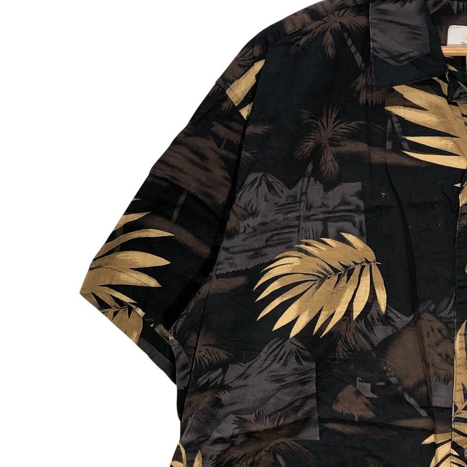 商品名:High Surf アロハシャツ ヤシの木 総柄 オープンカラー 半袖シャツ China製 Lサイズ ブラック ブラウン ベージュ