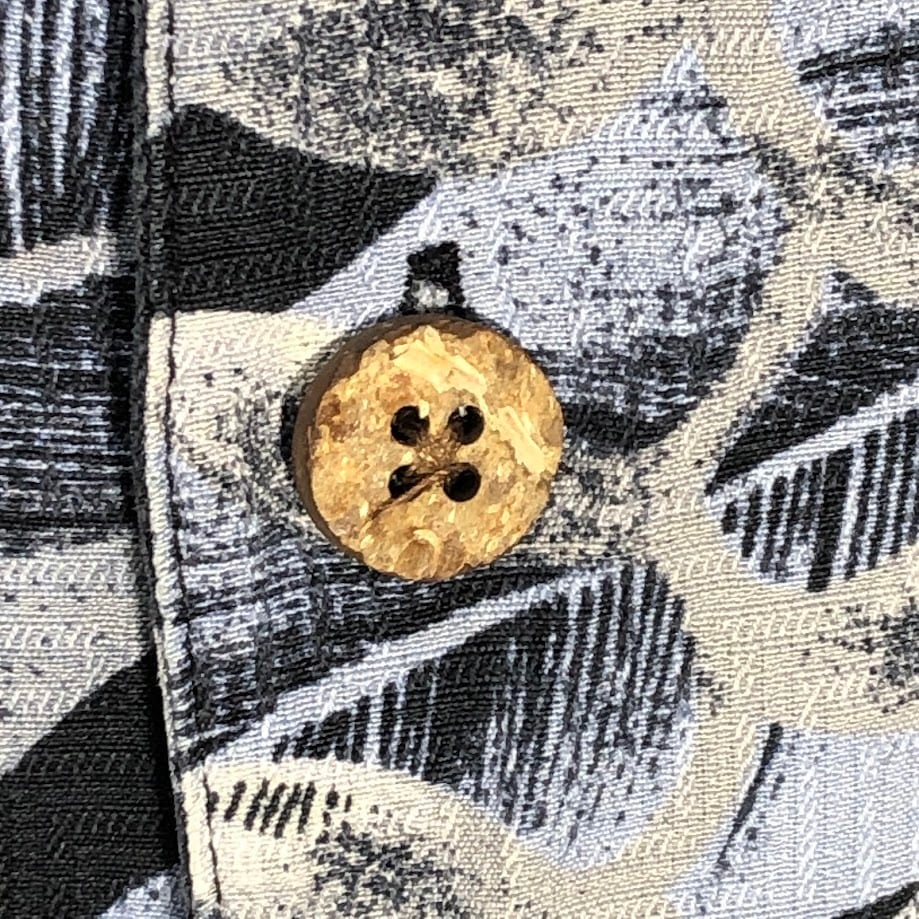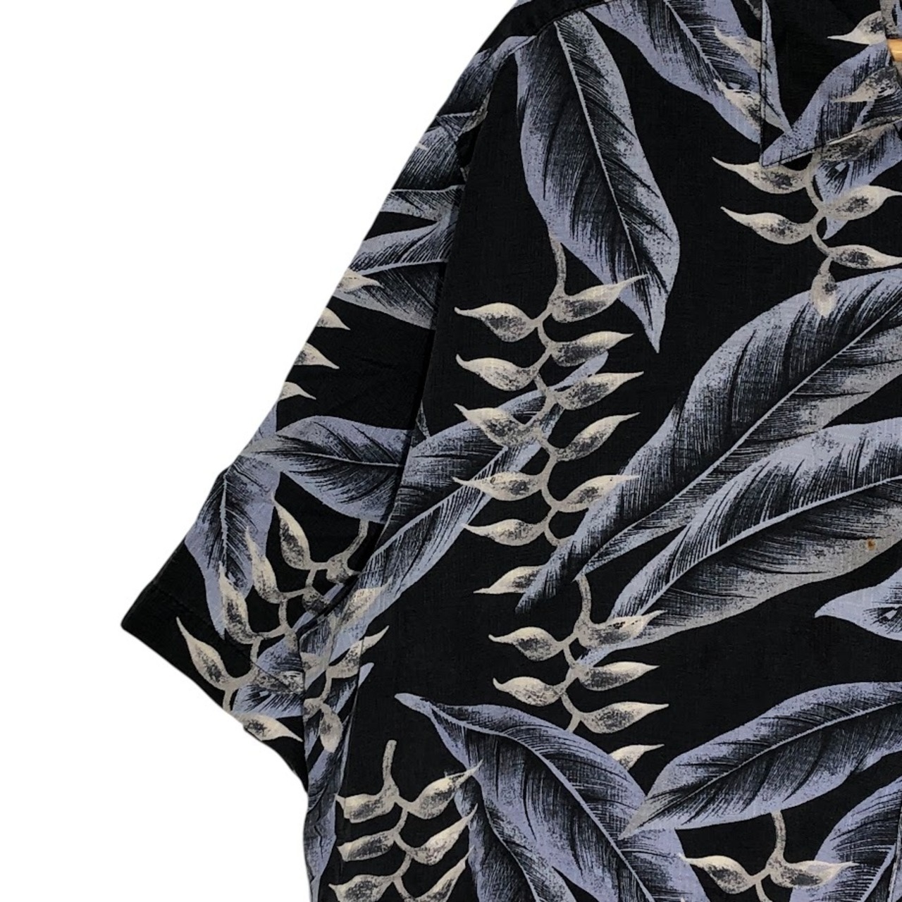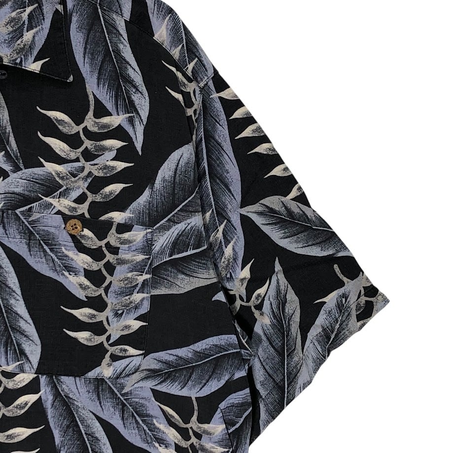 商品名:BANANA CABANA バナナカバナ シルク製 アロハシャツ 半袖シャツ China製 MEN'S Lサイズ ネイビー ブルー グレー