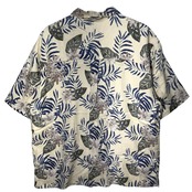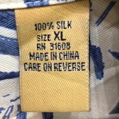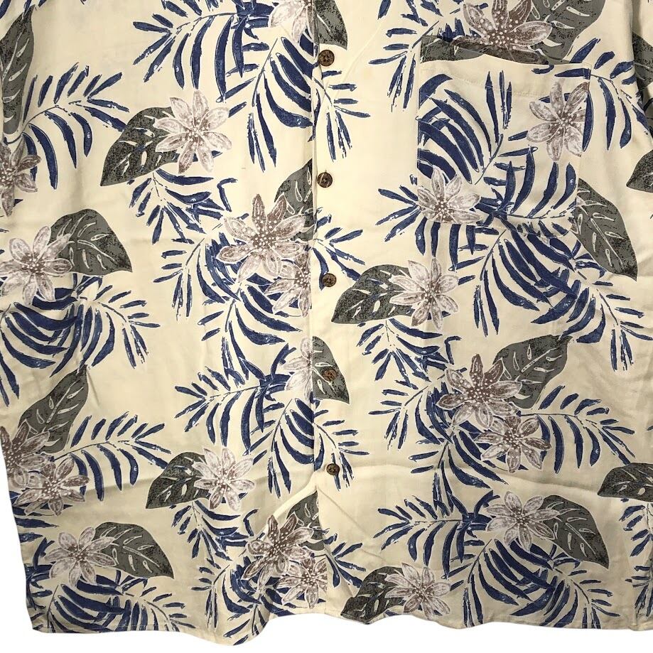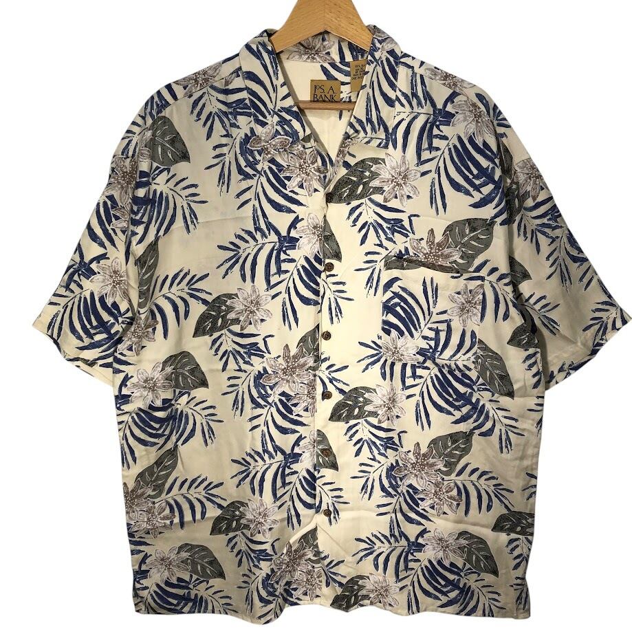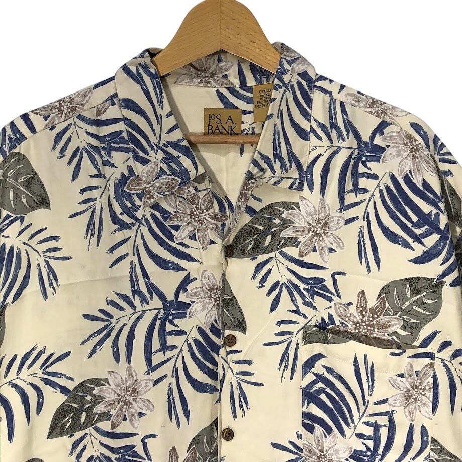 JOS.A.BANK 90年代/90’ アロハシャツ ハワイアンシャツ シルクシャツ 開襟 オープンカラー 総柄 半袖 シャツ ボタンダウン オーバーサイズ ビッグシルエット CHINA製 XLサイズ アイボリー ブルー