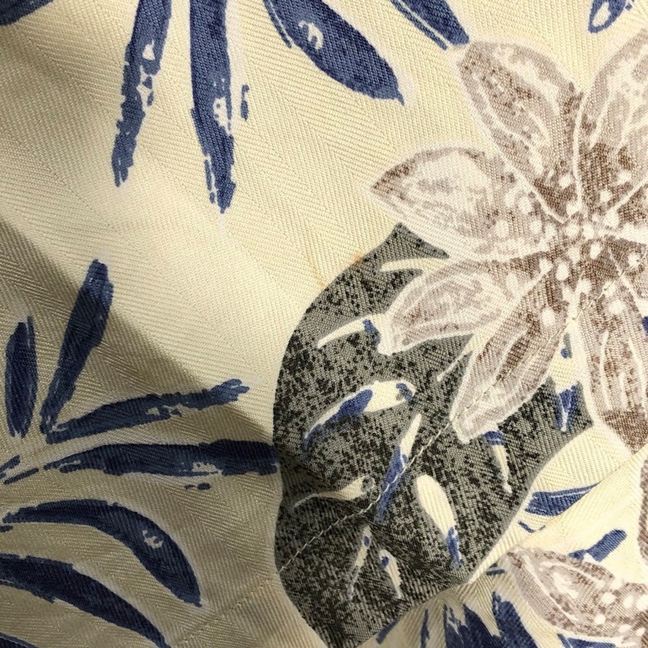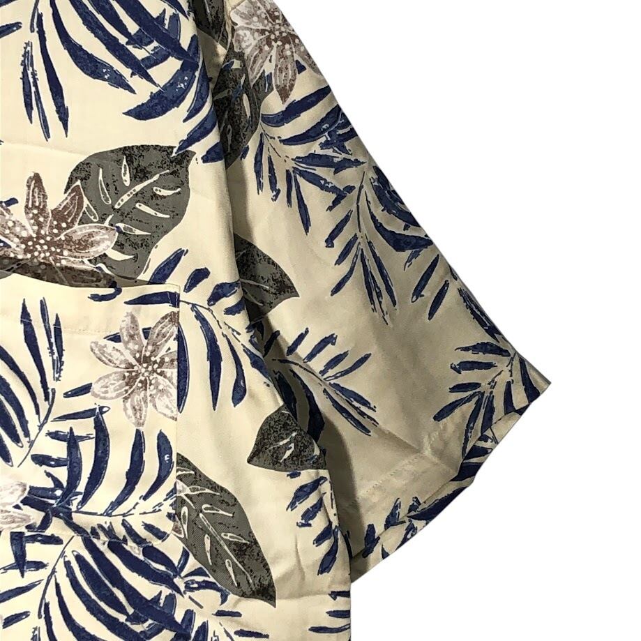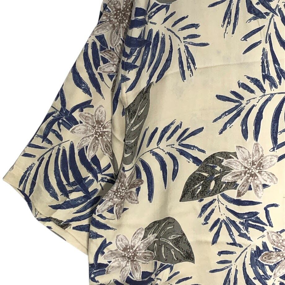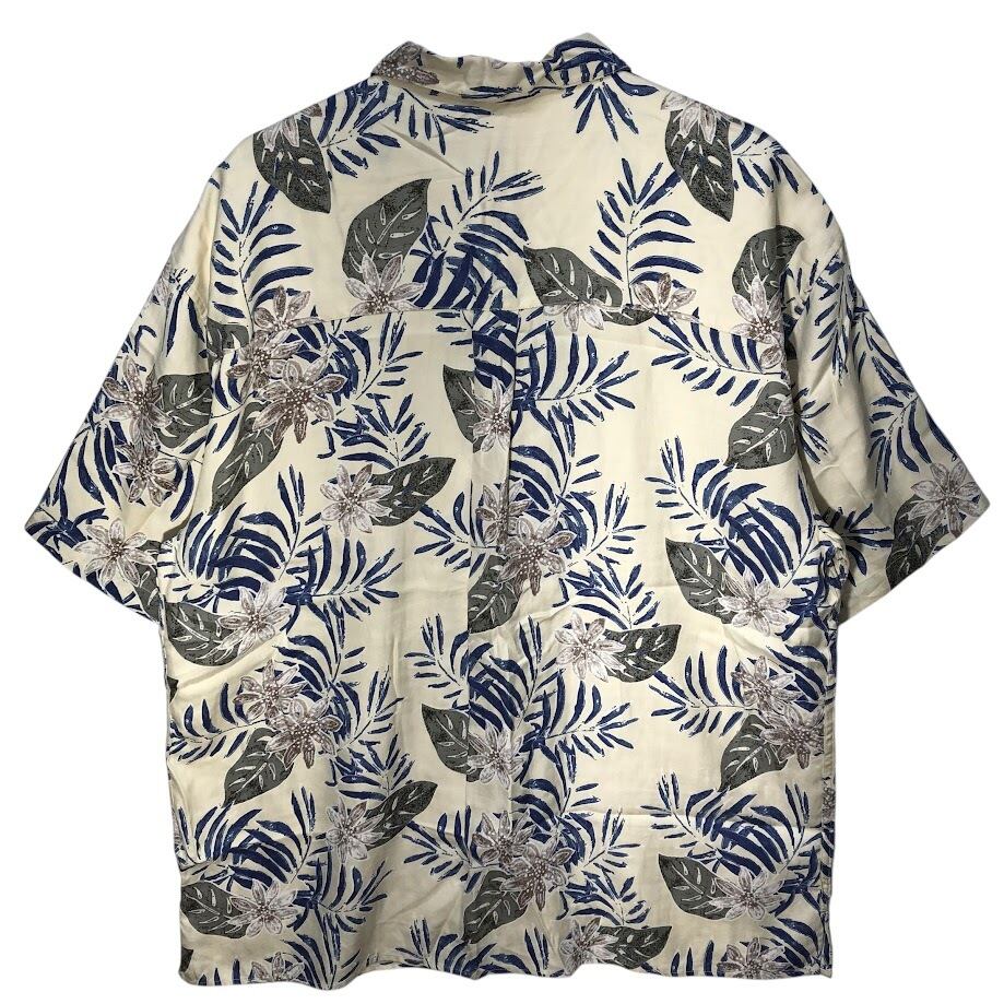 商品名:JOS.A.BANK 90年代/90’ アロハシャツ ハワイアンシャツ シルクシャツ 開襟 オープンカラー 総柄 半袖 シャツ ボタンダウン オーバーサイズ ビッグシルエット CHINA製 XLサイズ アイボリー ブルー