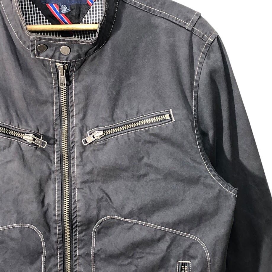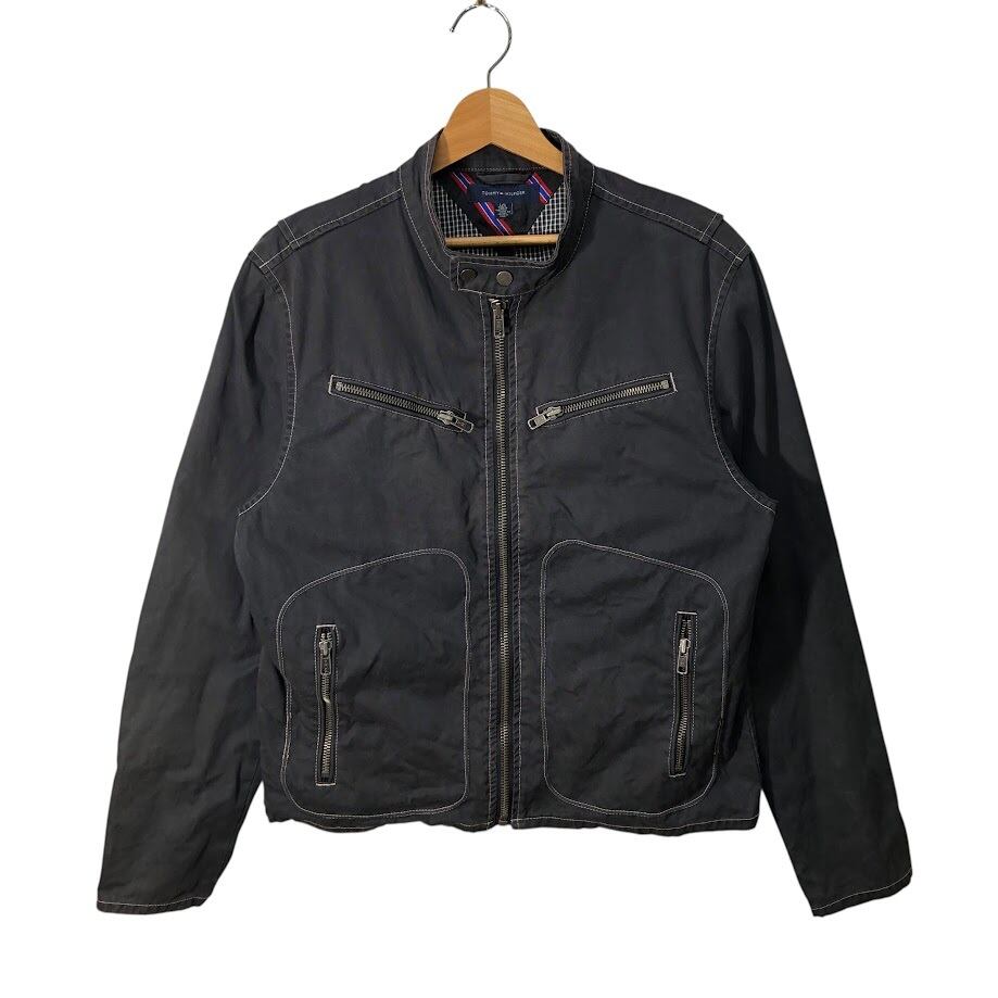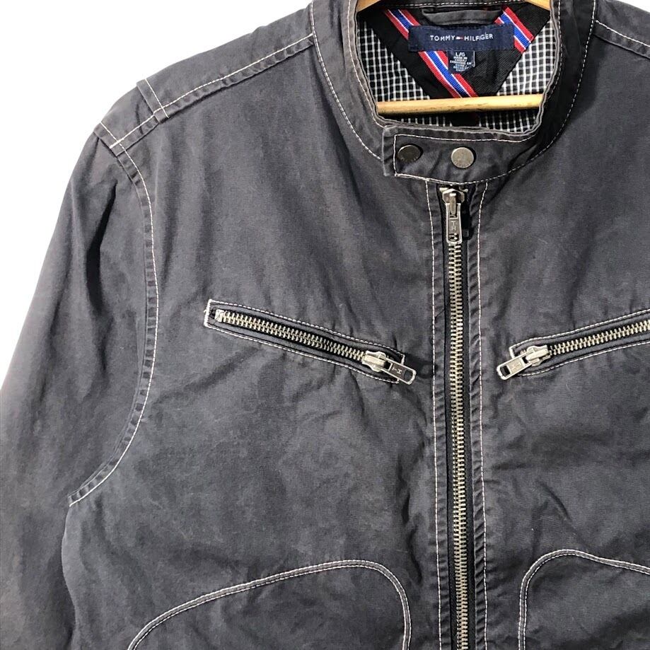 TOMMY HILFIGER トミーヒルフィガー ブルゾン ノーカラー ギンガムチェック柄 CHINA製 L/Gサイズ グレー