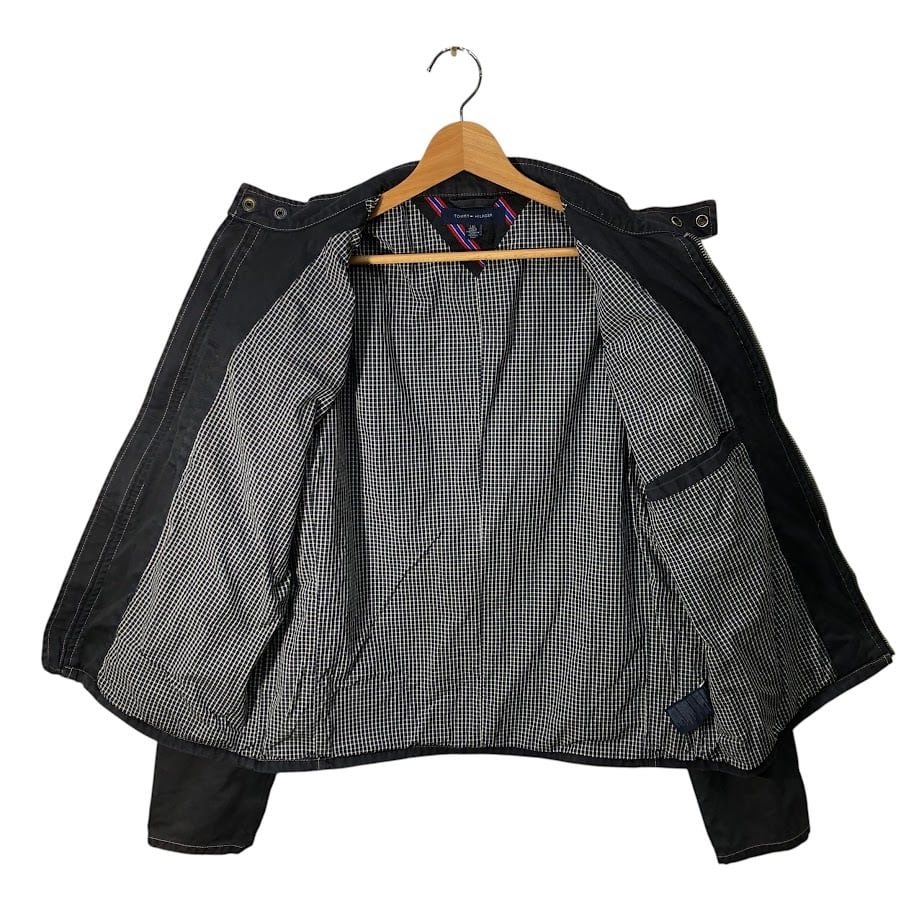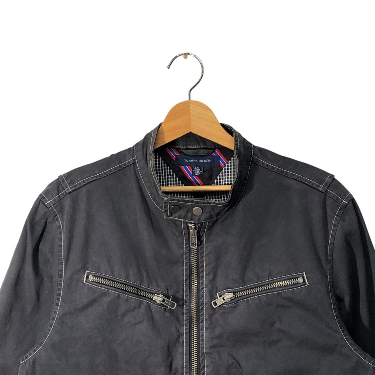 商品名:TOMMY HILFIGER トミーヒルフィガー ブルゾン ノーカラー ギンガムチェック柄 CHINA製 L/Gサイズ グレー