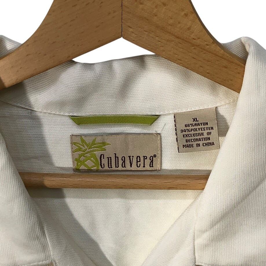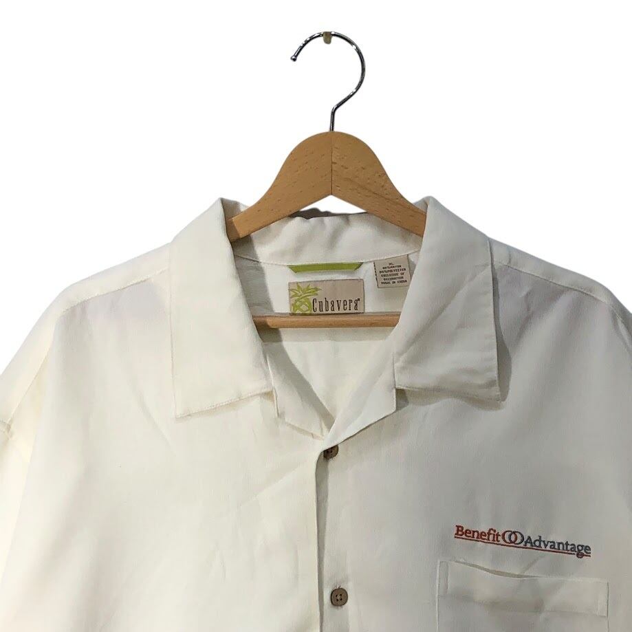 ヴィンテージ Cubavera 開襟シャツ 半袖 シャツ ボタンダウン 企業ロゴ刺繍 オーバーサイズ ビッグシルエット CHINA製 XLサイズ アイボリー