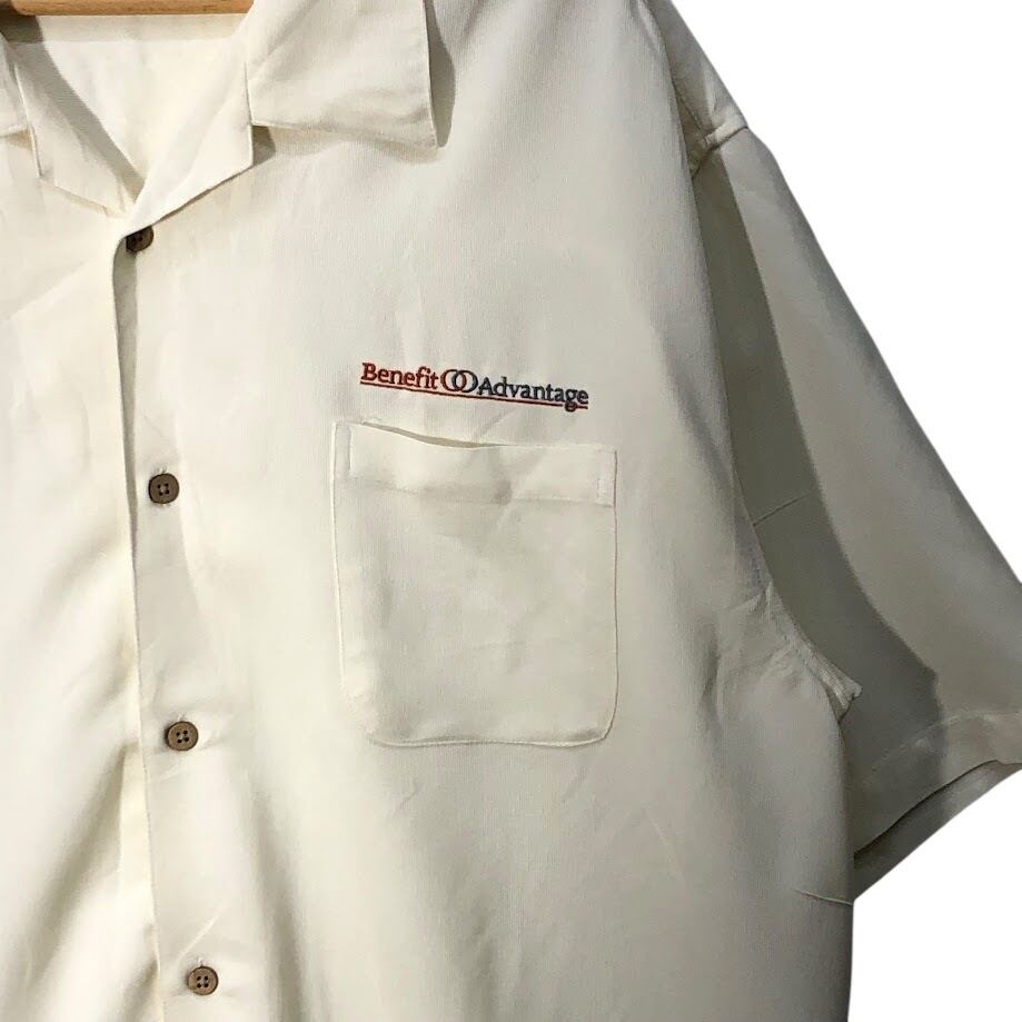 商品名:ヴィンテージ Cubavera 開襟シャツ 半袖 シャツ ボタンダウン 企業ロゴ刺繍 オーバーサイズ ビッグシルエット CHINA製 XLサイズ アイボリー