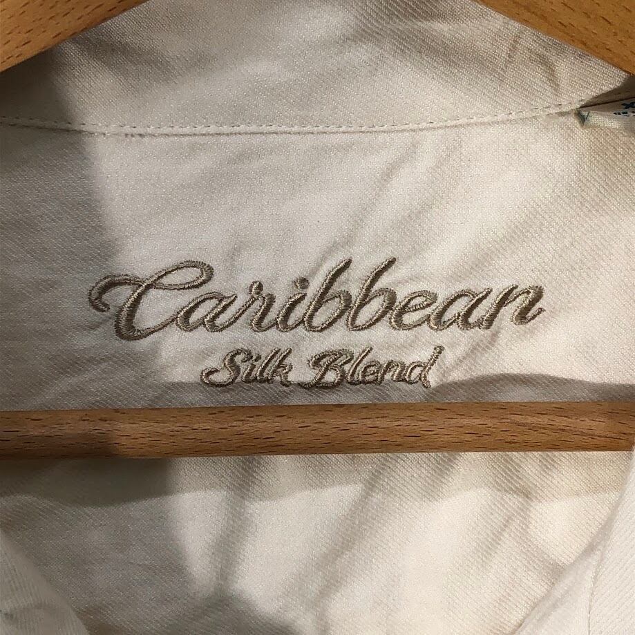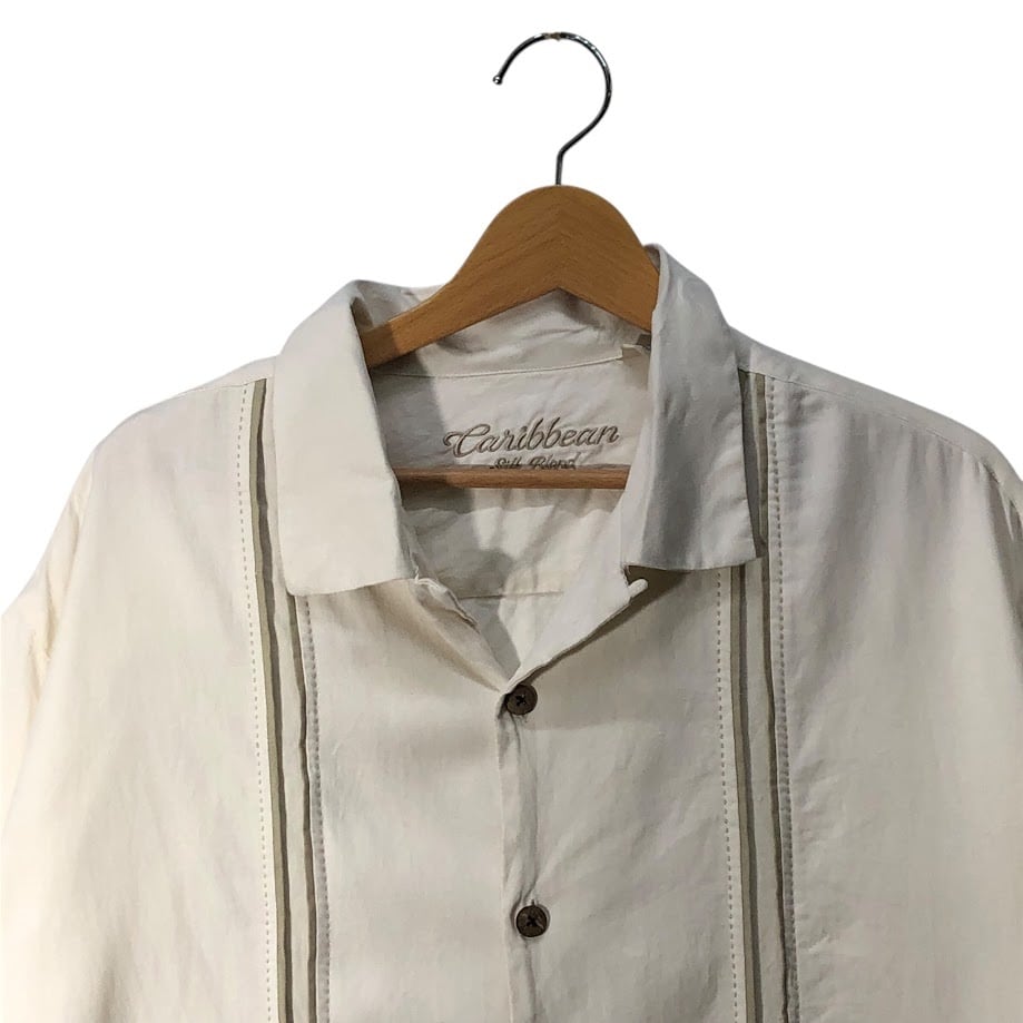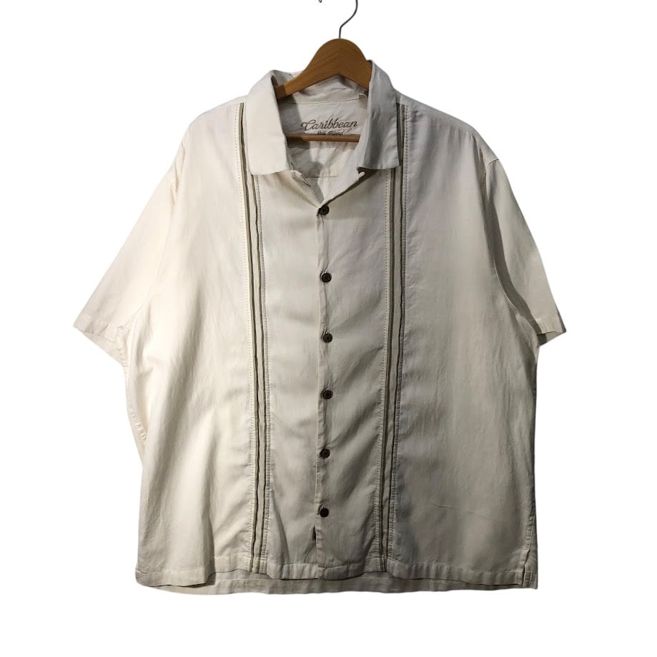ヴィンテージ Caribbean キューバシャツ メキシカン 開襟 シルクシャツ シャツ 半袖 ボタンダウン フロント刺繍 オーバーサイズ ビッグシルエット CHINA製 XLサイズ ホワイト