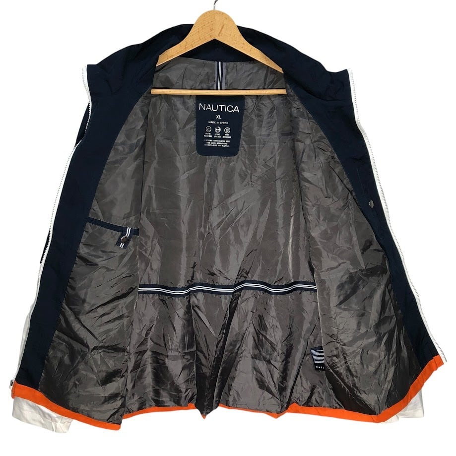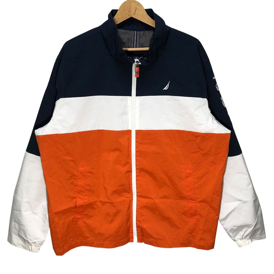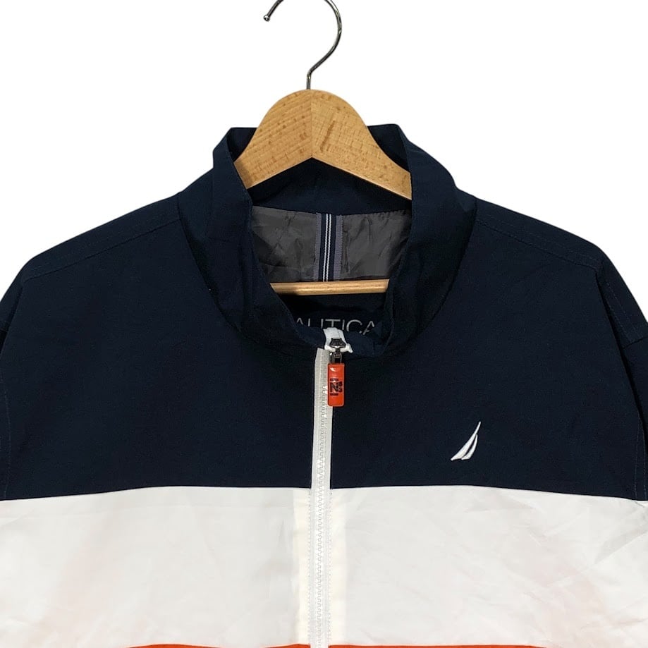 NAUTICA ノーティカ ナイロンジャケット 袖 ロゴ刺繡 ライトアウター ワンポイント刺繡 オーバーサイズ ビッグシルエット China製 XLサイズ ネイビー ホワイト オレンジ