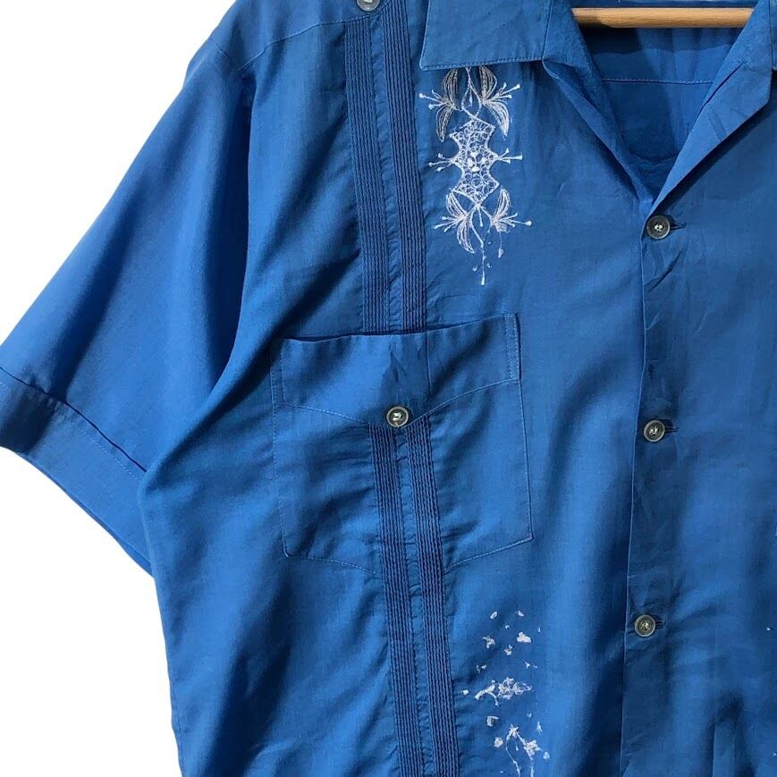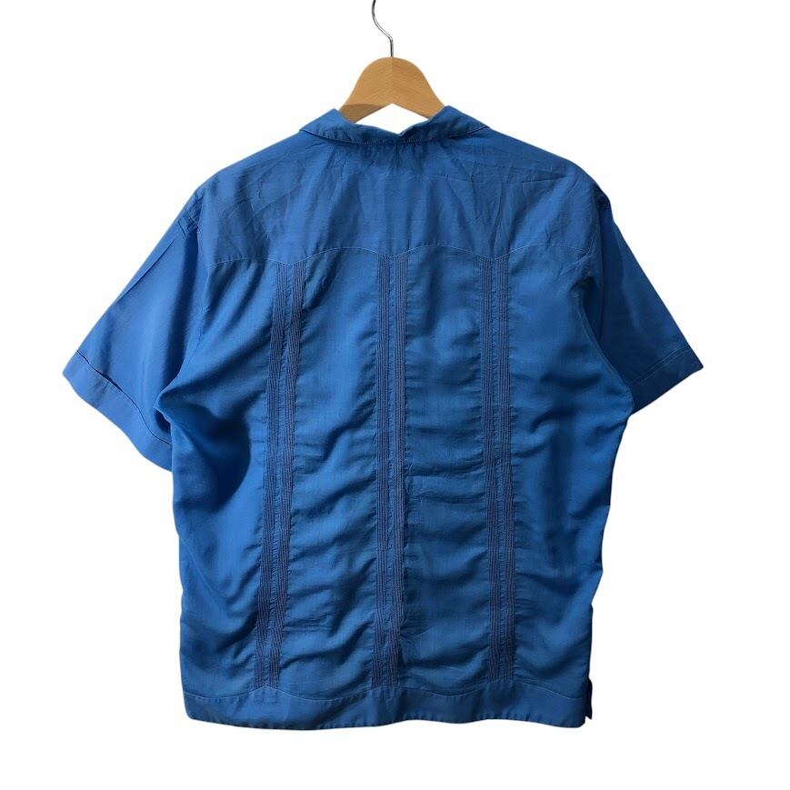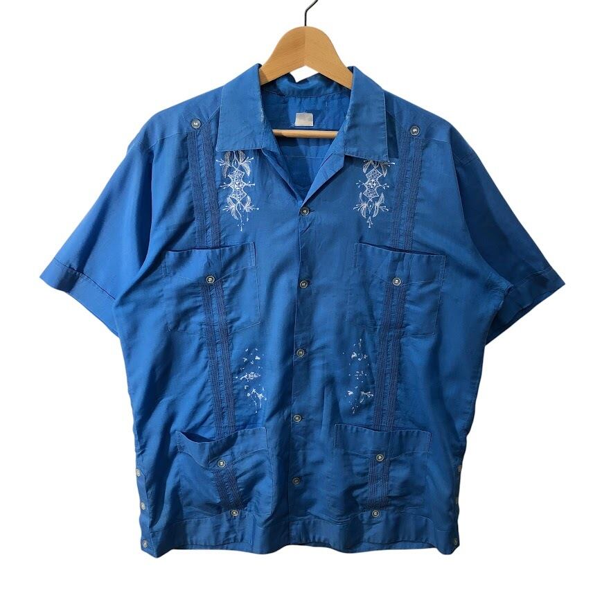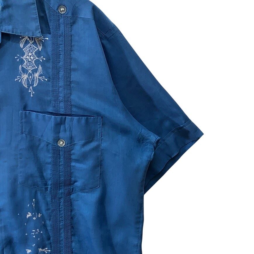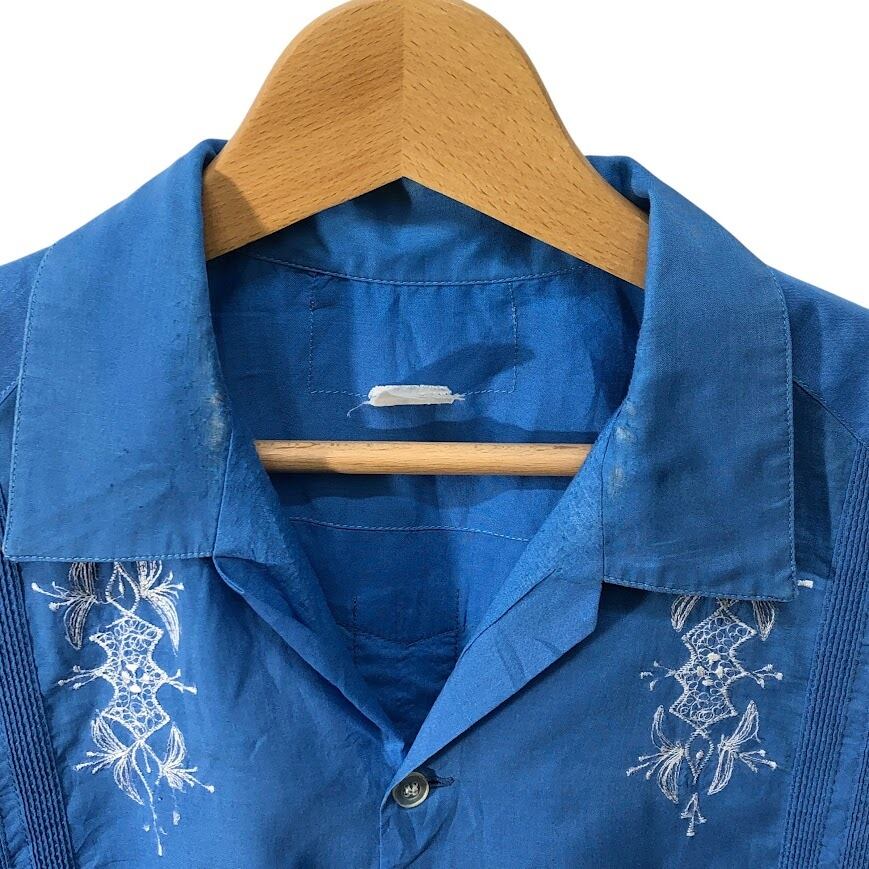 商品名:90's vintage 90年代 ヴィンテージ キューバシャツ シングルステッチ メキシカン 半袖 シャツ ボタンダウン フロント刺繍 ブルー