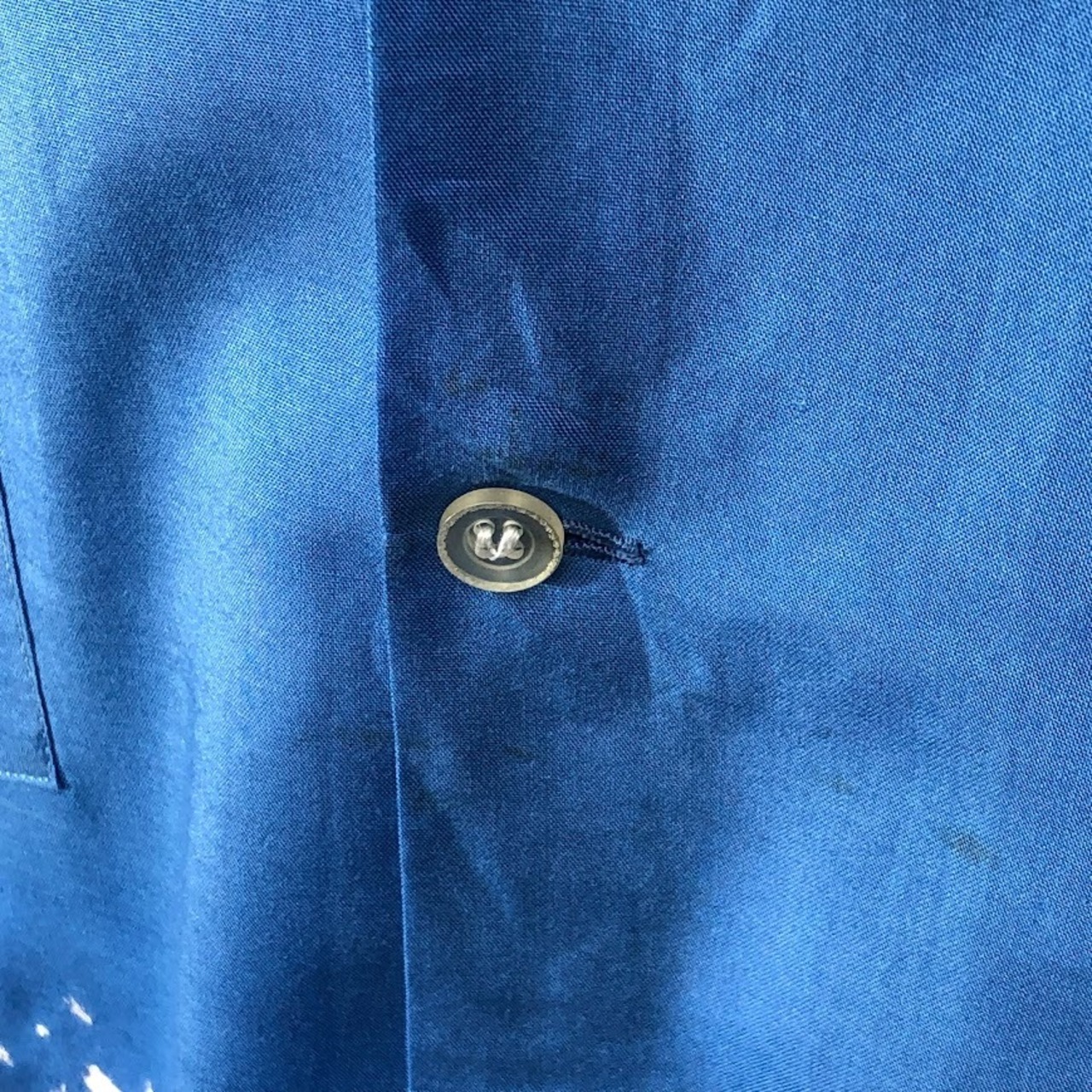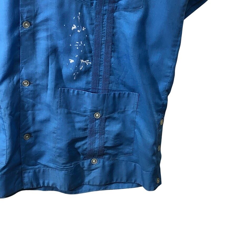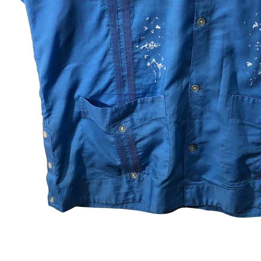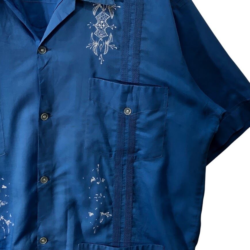 商品名:90's vintage 90年代 ヴィンテージ キューバシャツ シングルステッチ メキシカン 半袖 シャツ ボタンダウン フロント刺繍 ブルー