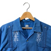 90's vintage 90年代 ヴィンテージ キューバシャツ シングルステッチ メキシカン 半袖 シャツ ボタンダウン フロント刺繍 ブルー