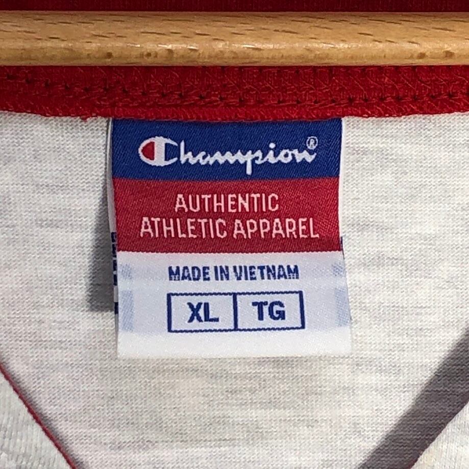 商品名:Champion チャンピオン Team RENT 2-OWN 野球 ベースボールシャツ ゲームシャツ 半袖シャツ バック刺繡 ワンポイント刺繡 オーバーサイズ ビッグシルエット Vietnam製 XLサイズ レッド ライトグレー
