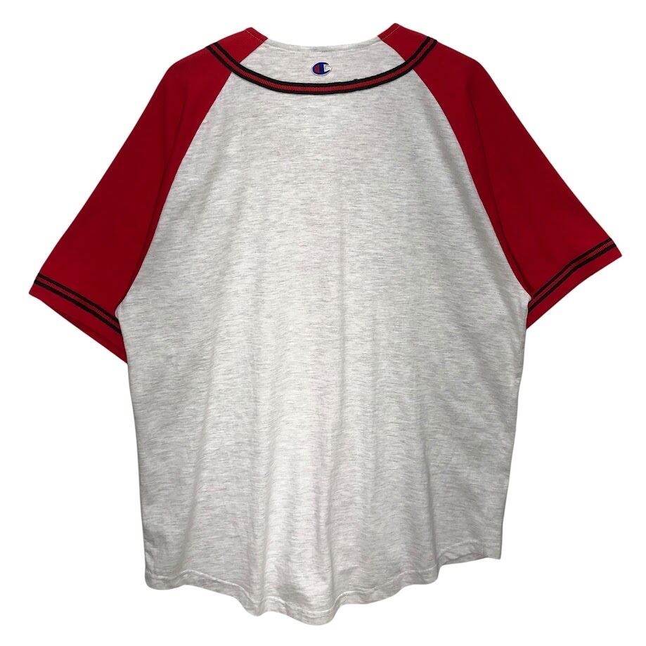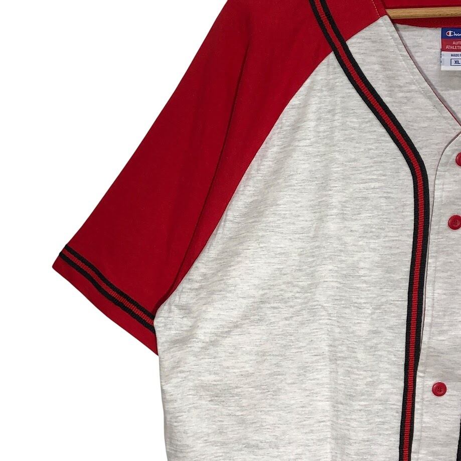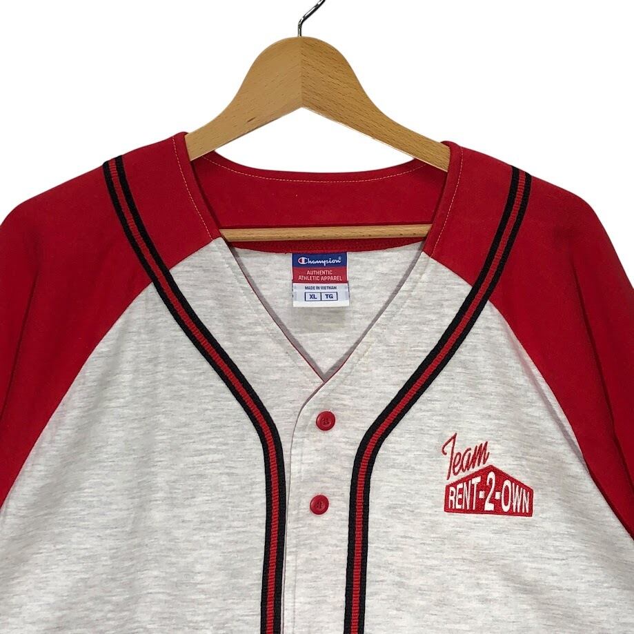 Champion チャンピオン Team RENT 2-OWN 野球 ベースボールシャツ ゲームシャツ 半袖シャツ バック刺繡 ワンポイント刺繡 オーバーサイズ ビッグシルエット Vietnam製 XLサイズ レッド ライトグレー