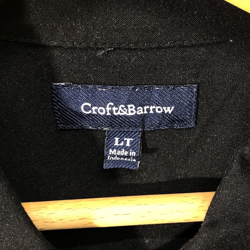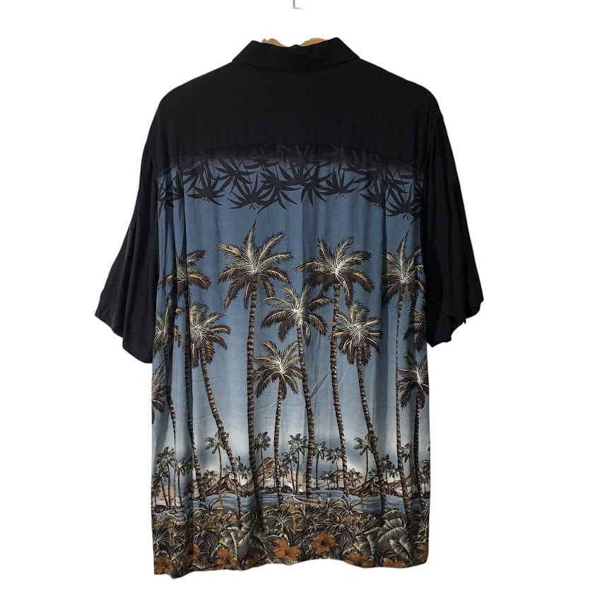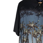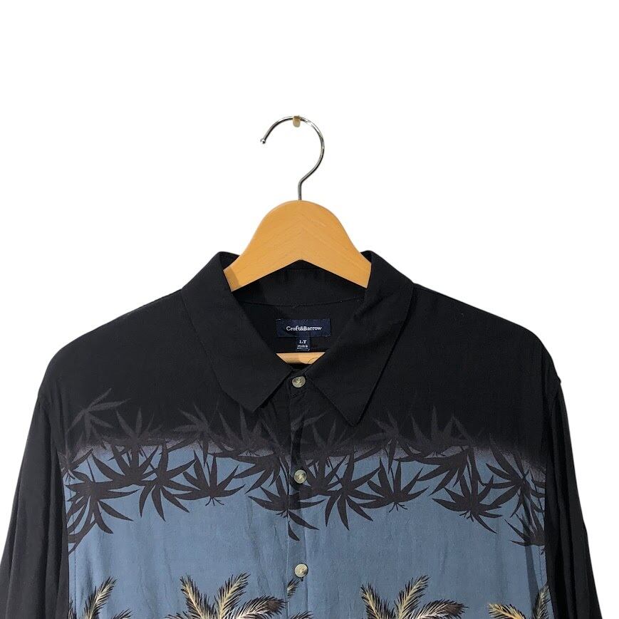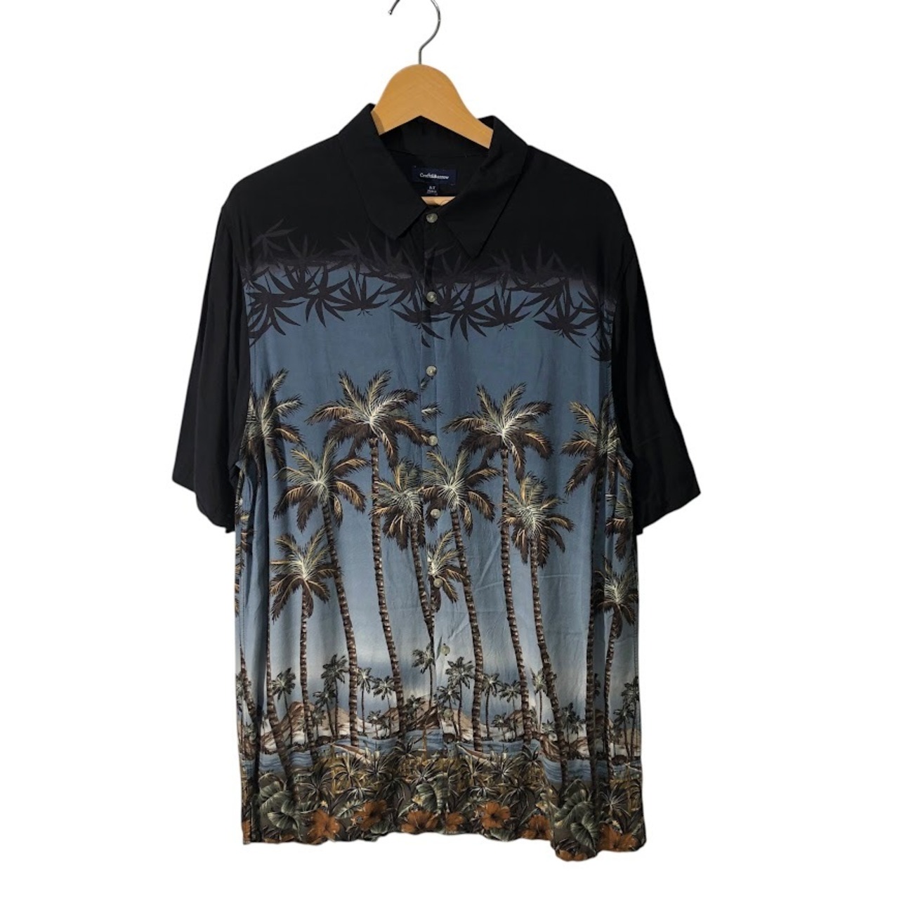商品名:Croft&Barrowアロハシャツ 総柄 US古着 ボタンダウン オープンカラー 開襟シャツ レーヨンシャツ 半袖 シャツ インドネシア製 Lサイズ ブラック ブルー