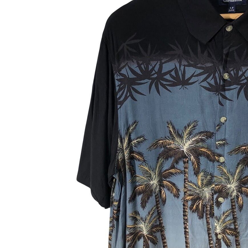 Croft&Barrowアロハシャツ 総柄 US古着 ボタンダウン オープンカラー 開襟シャツ レーヨンシャツ 半袖 シャツ インドネシア製 Lサイズ ブラック ブルー