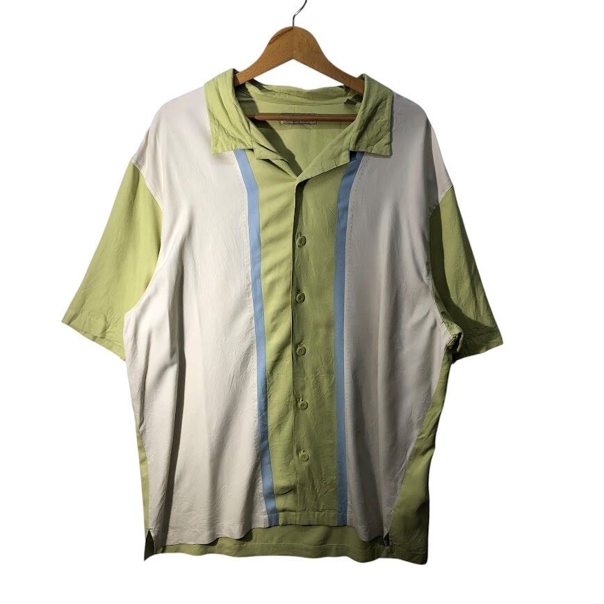商品名:アロハシャツ 総柄 US古着 ボタンダウン オープンカラー 開襟シャツ シルクシャツ 半袖 シャツ オーバーサイズ ビッグシルエット China製 XLサイズ マルチカラー