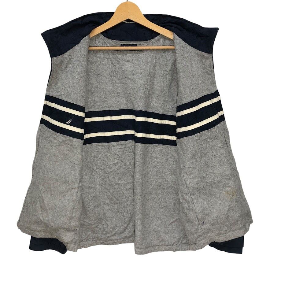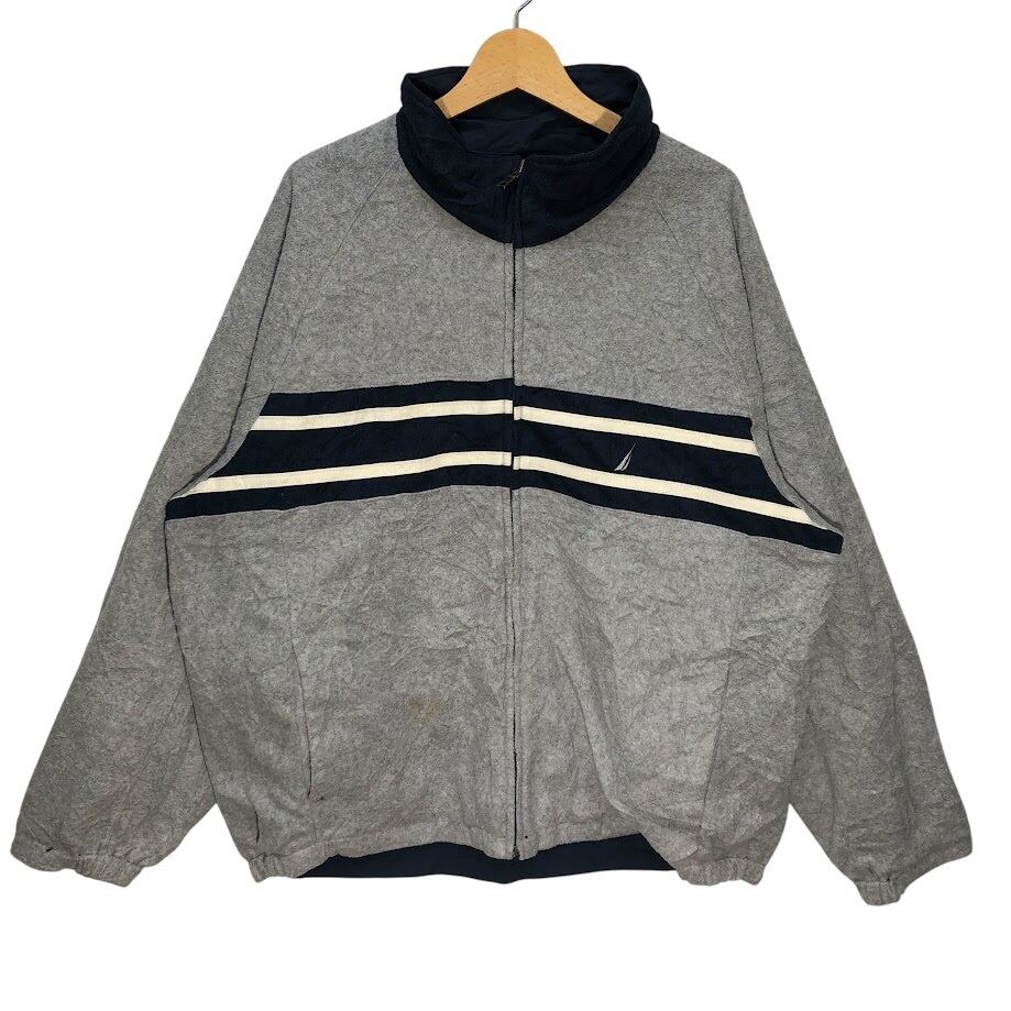 商品名:90's vintage NAUTICA ノーティカ セーリングリバーシブルジャケット フルジップ ジップアップ 2WAY アウター 長袖 ワンポイント刺繡 オーバーサイズ ビッグシルエット IDEALジップ Vietnam製 XLサイズ ネイビー グレー