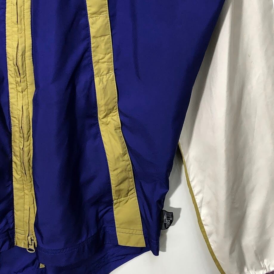 商品名:90's vintage 90年代 adidas 5国旗タグ アディダス ナイロンジャケット CLIMA SHELL ウインドブレーカー ライトアウター EQUIPMENT 2WAYドッキングジャケット 袖 着脱 CHINA製 Mサイズ パープル ホワイト