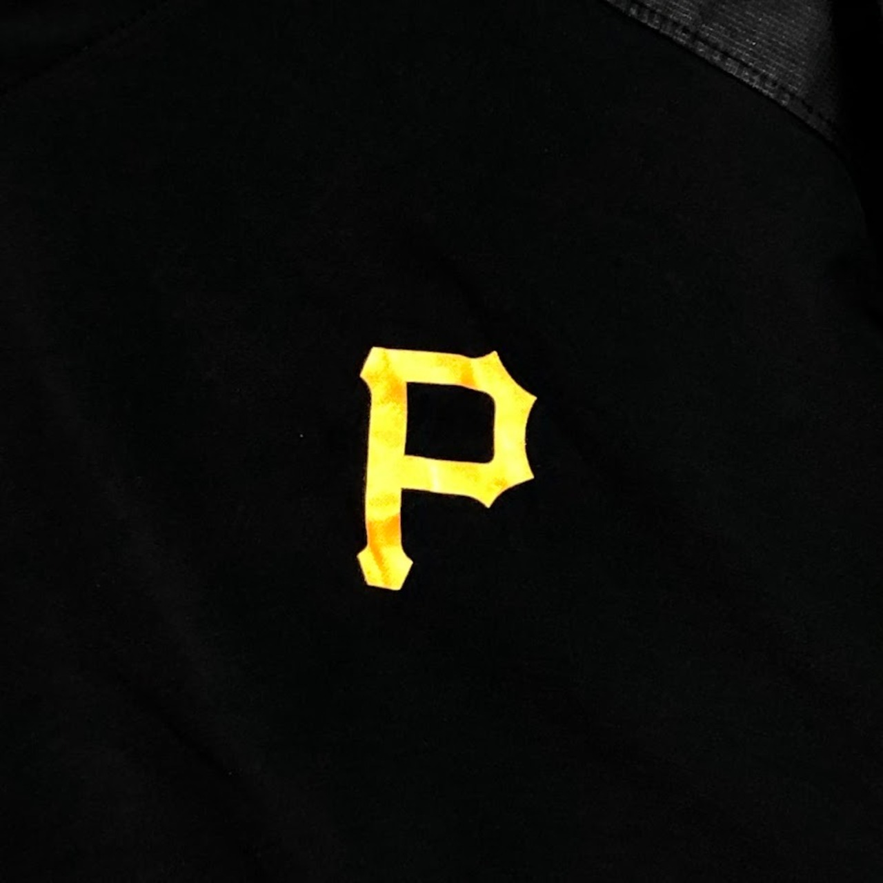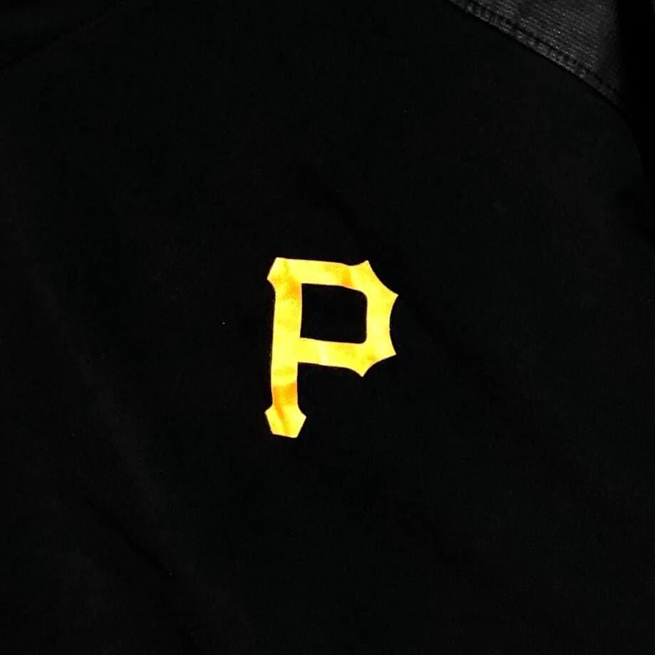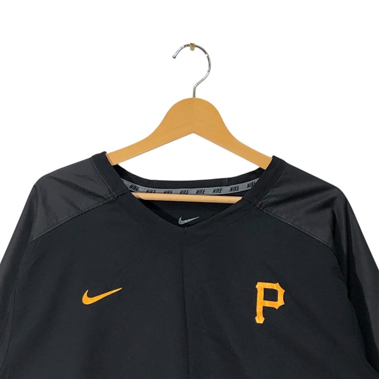 NIKE DRI-FIT ナイキ ナイロンプルオーバーシャツ ブランドロゴ&Pプリント ピックバーグ パイレーツ ドローコード インドネシア製 Lサイズ ブラック