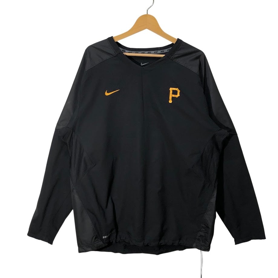 商品名:NIKE DRI-FIT ナイキ ナイロンプルオーバーシャツ ブランドロゴ&Pプリント ピックバーグ パイレーツ ドローコード インドネシア製 Lサイズ ブラック