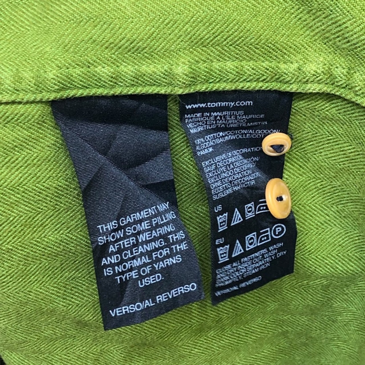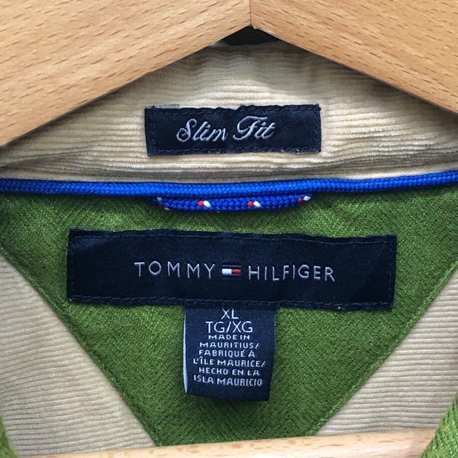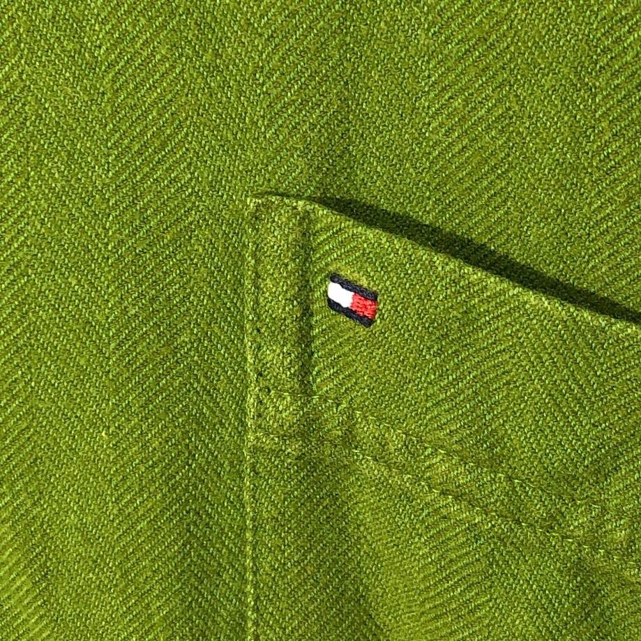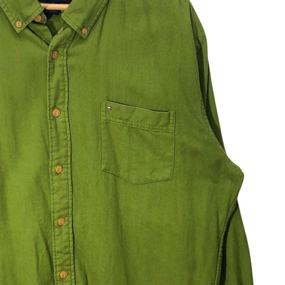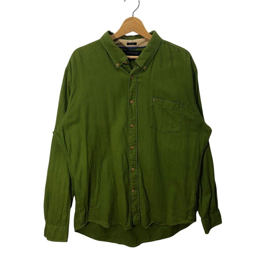 商品名:00's vintage 00年代 ヴィンテージ TOMMY HILFIGER トミーヒルフィガー SlimFit コットン長袖シャツ 紺タグ MAURITIS製 XL/TGサイズ グリーン
