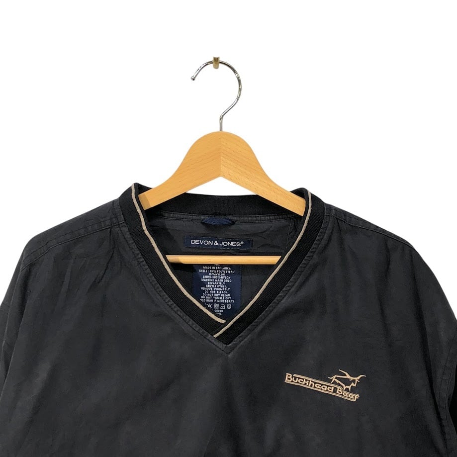 商品名:DEVON&JONES ナイロンプルオーバーシャツ ナイロンジャケット 企業ロゴ刺繡 スリランカ製 XLサイズ ブラック