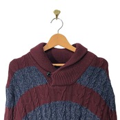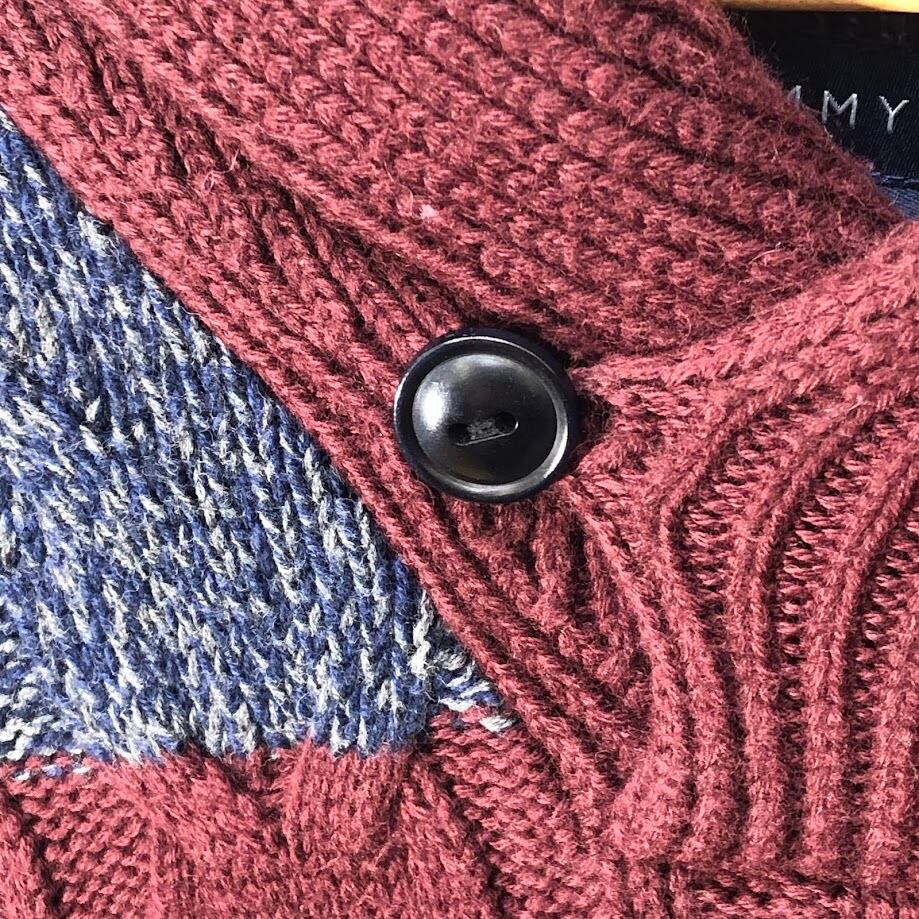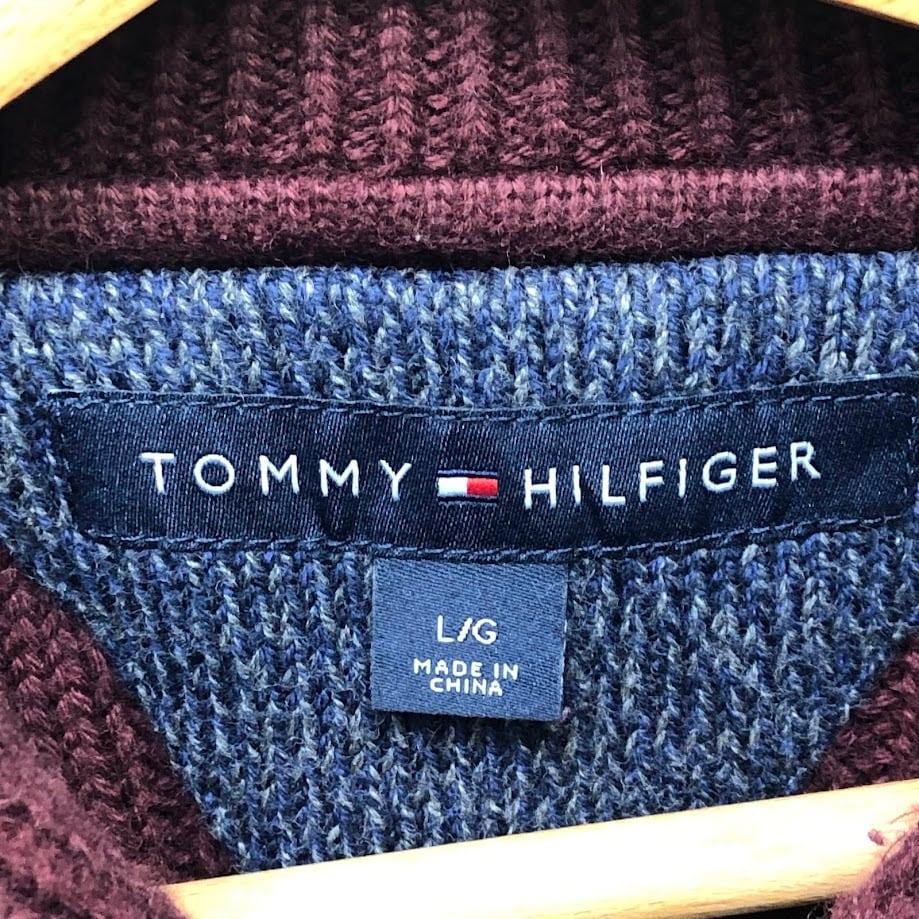 TOMMY HILFIGER トミーヒルフィガー ニット セーター ワンポイント刺繡 CHINA製 Lサイズ ワインレッド ネイビー