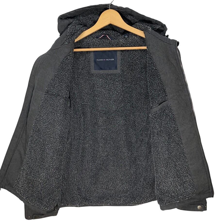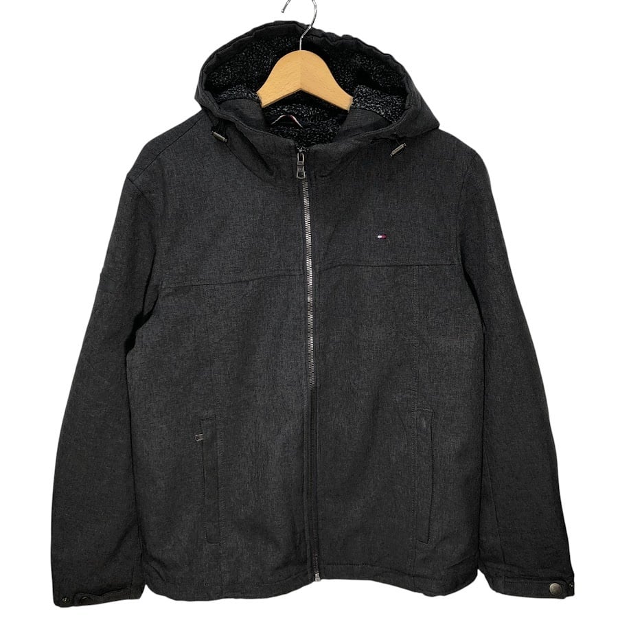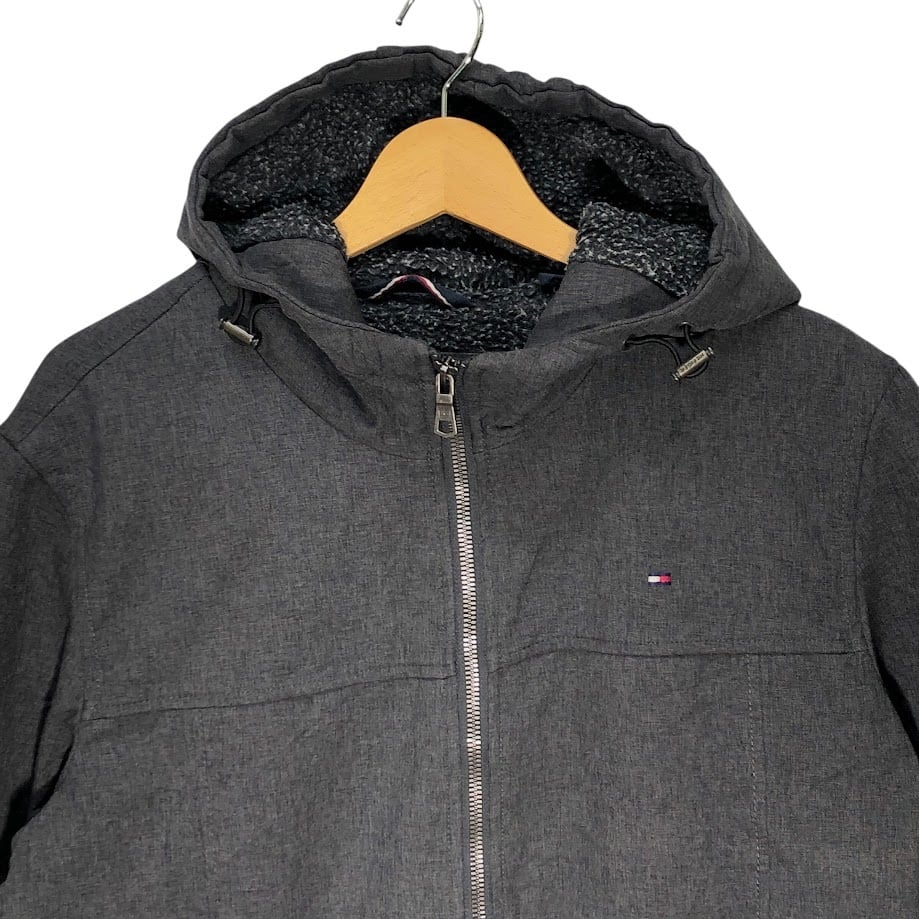 TOMMY HILFIGER トミーヒルフィガー ソフトシェルフーディー ジャケット ブルゾン ボアライナー フード アウター ドローコード ワンポイント刺繡 CHINA製 Sサイズ グレー