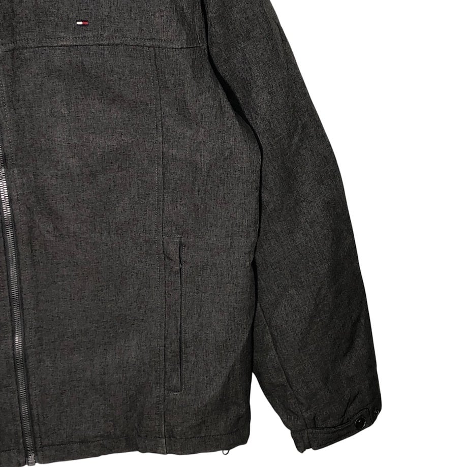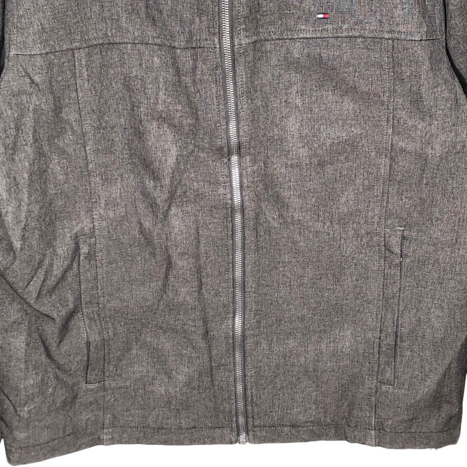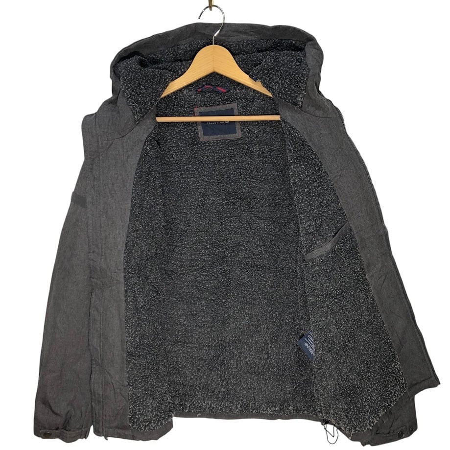 TOMMY HILFIGER トミーヒルフィガー ソフトシェルフーディージャケット ボアライナー ブルゾン アウター ドローコード ワンポイント刺繡 CHINA製 Mサイズ グレー