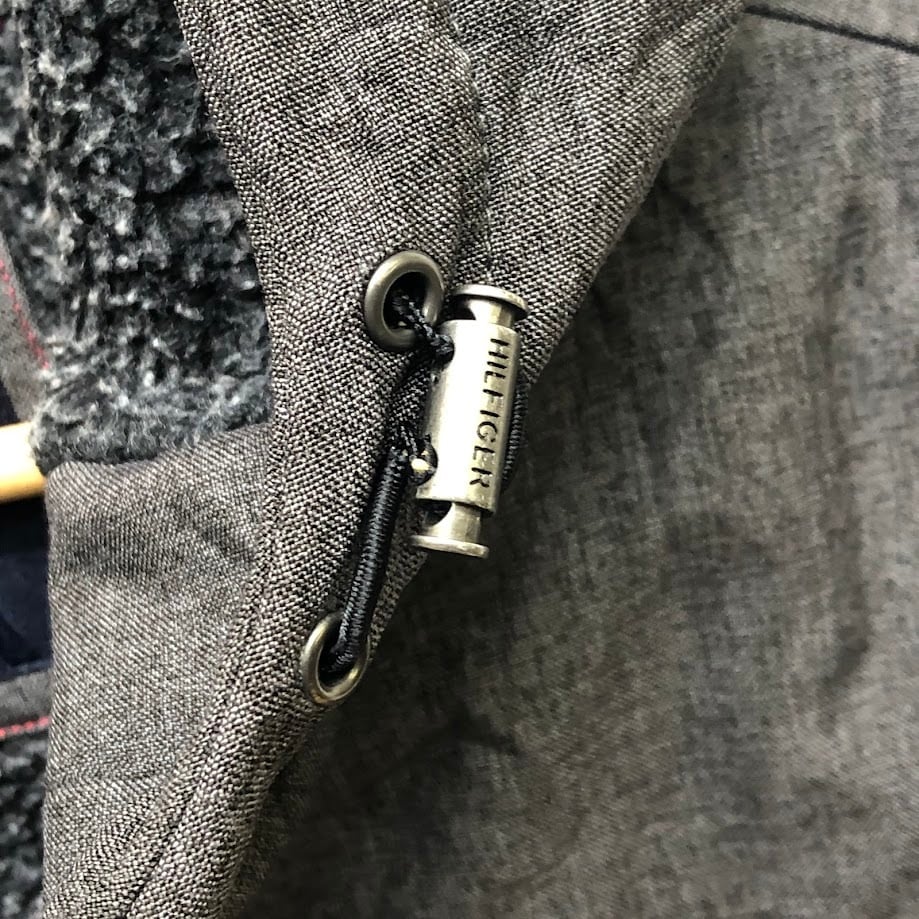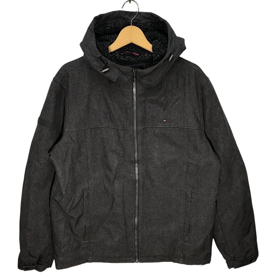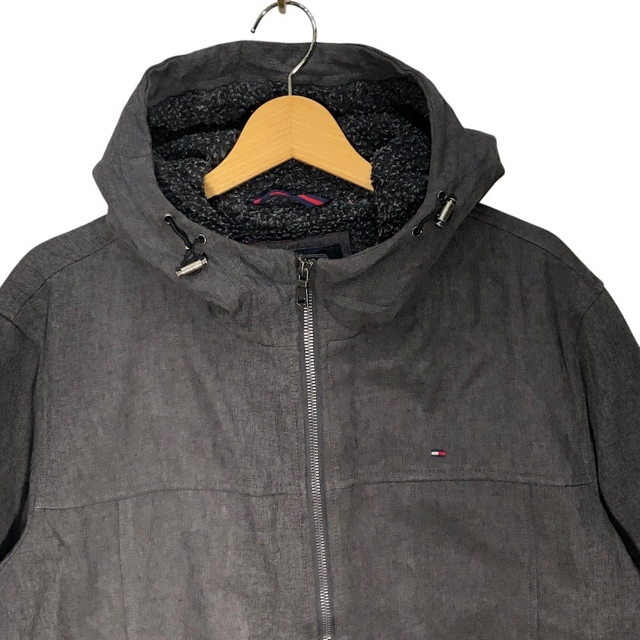 商品名:TOMMY HILFIGER トミーヒルフィガー ソフトシェルフーディージャケット ボアライナー ブルゾン アウター ドローコード ワンポイント刺繡 CHINA製 Mサイズ グレー