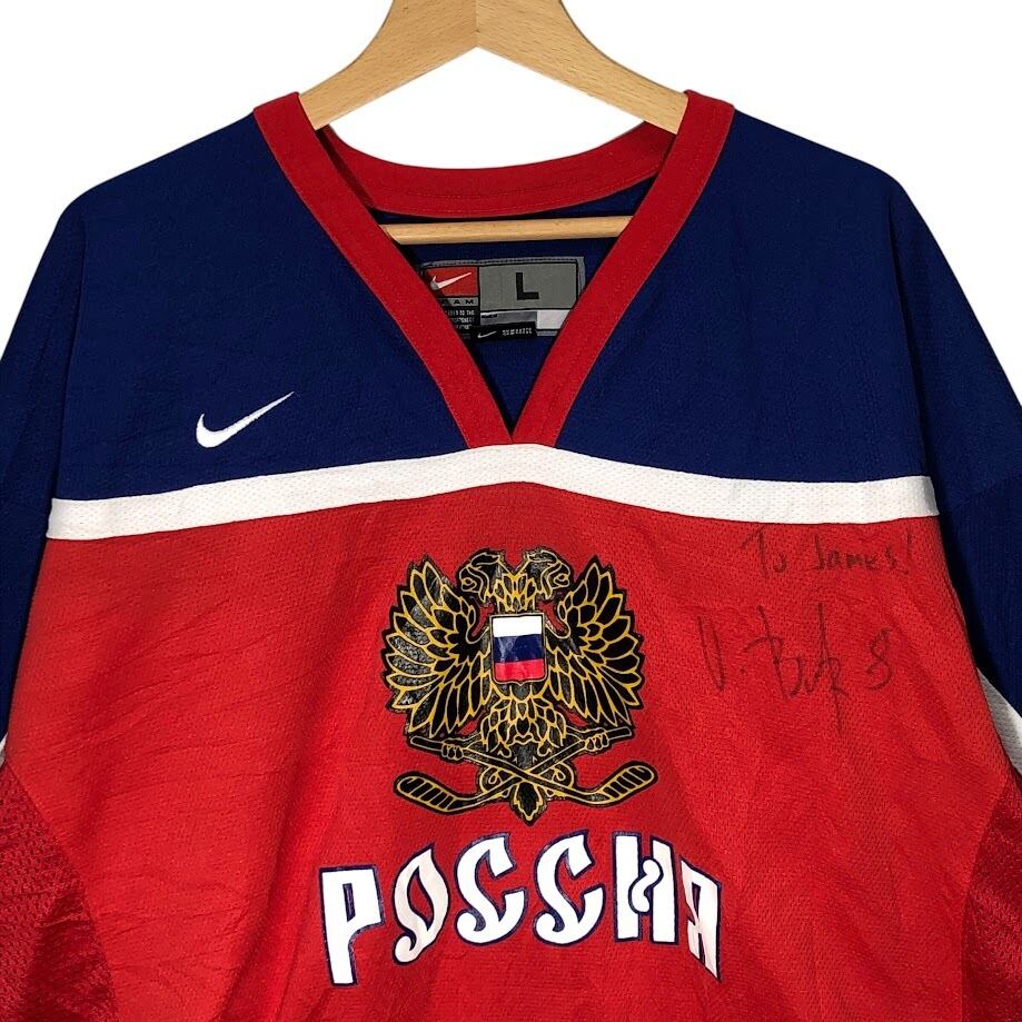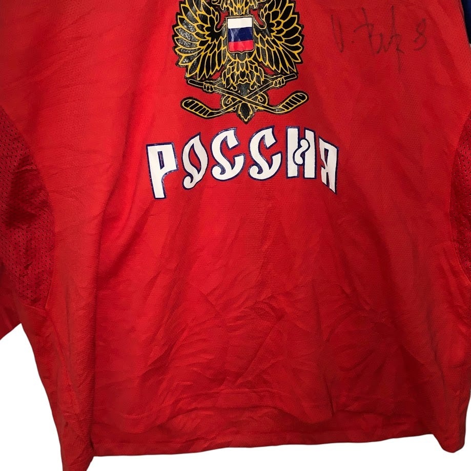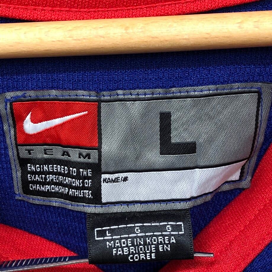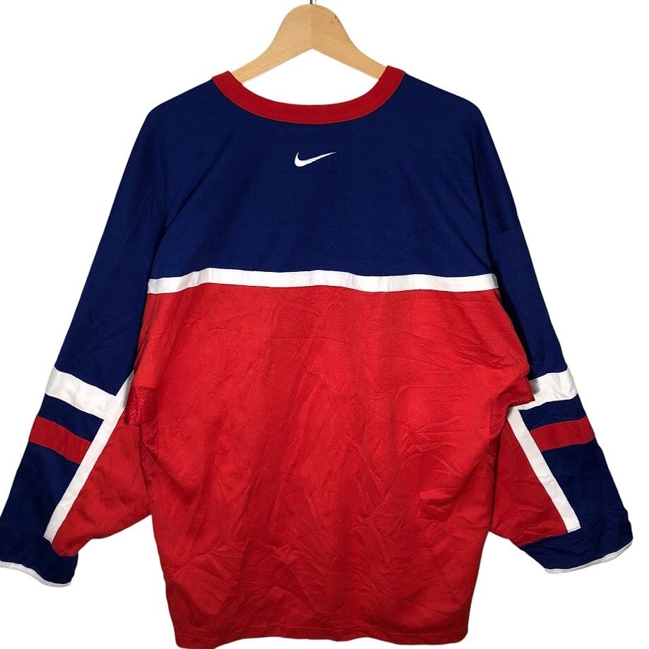 NIKE/ナイキ TEAM ロシア代表 アイスホッケー ゲームシャツ ユニフォーム スポーツチーム メッシュ 長袖 フロントプリント フロント刺繡 ワンポイント刺繡 オーバーサイズ ビッグシルエット KOREA製 Lサイズ レッド ネイビー