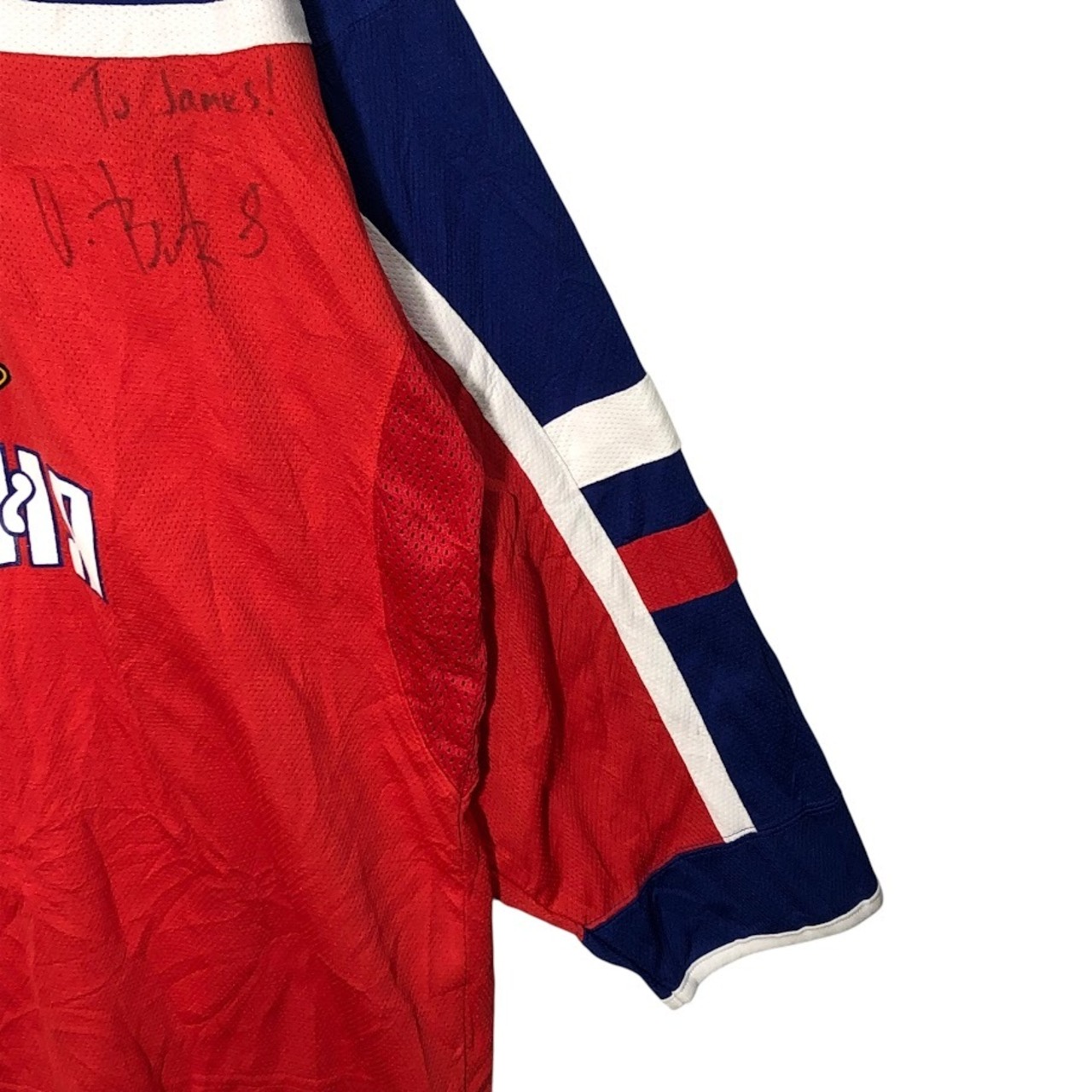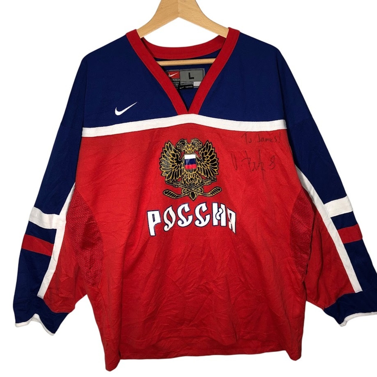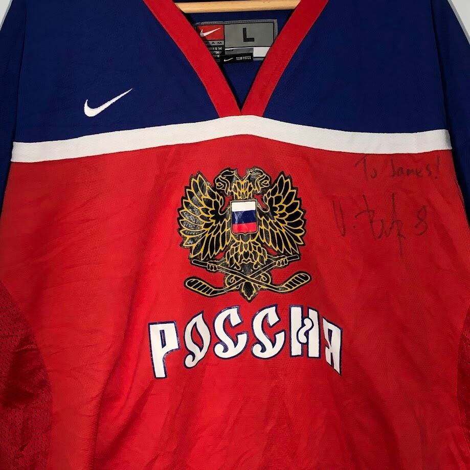 NIKE/ナイキ TEAM ロシア代表 アイスホッケー ゲームシャツ ユニフォーム スポーツチーム メッシュ 長袖 フロントプリント フロント刺繡 ワンポイント刺繡 オーバーサイズ ビッグシルエット KOREA製 Lサイズ レッド ネイビー
