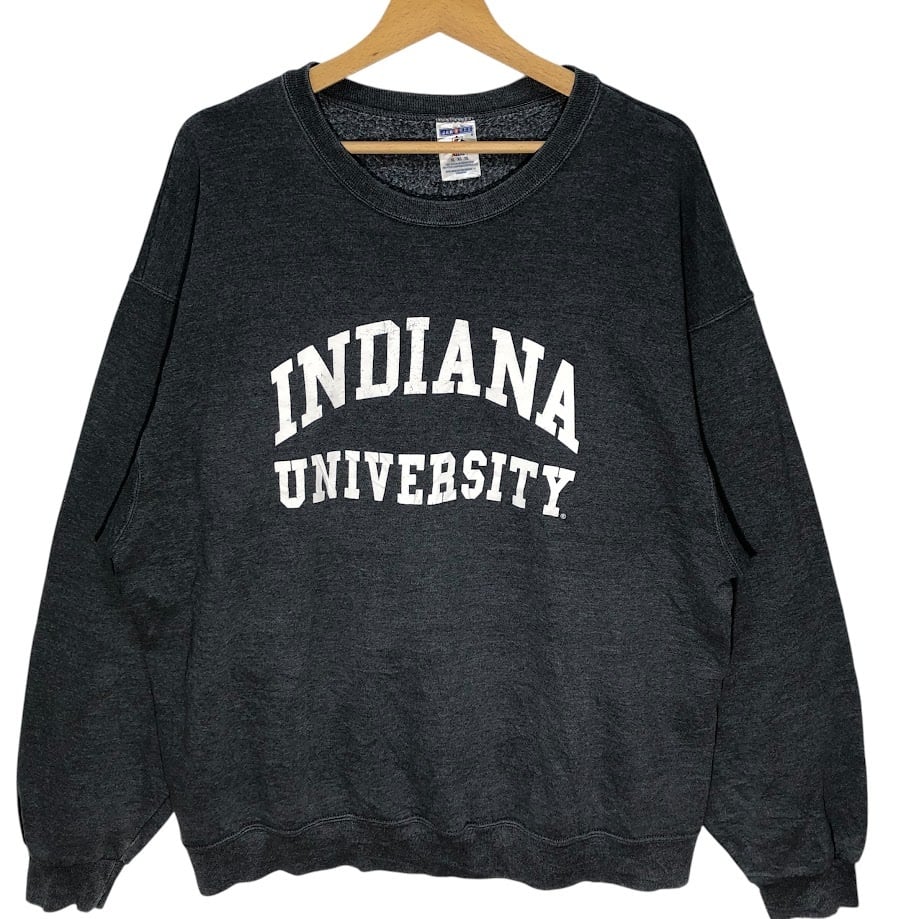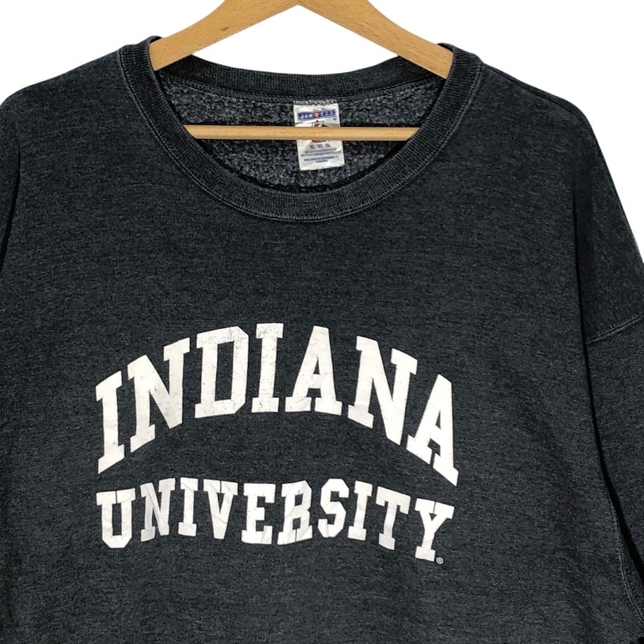 JERZEES/ジャージーズ 90-00年代/90'-00s ヴィンテージ カレッジロゴ INDIANA UNIVERSITY スウェット トレーナー 長袖 フロントプリント オーバーサイズ クルーネック Honduras製 XLサイズ グレー