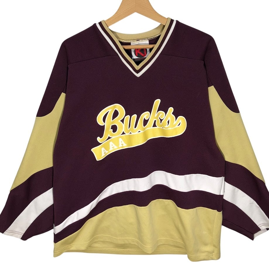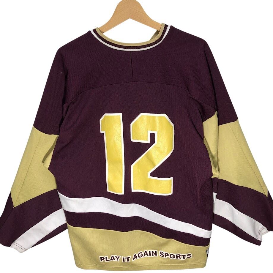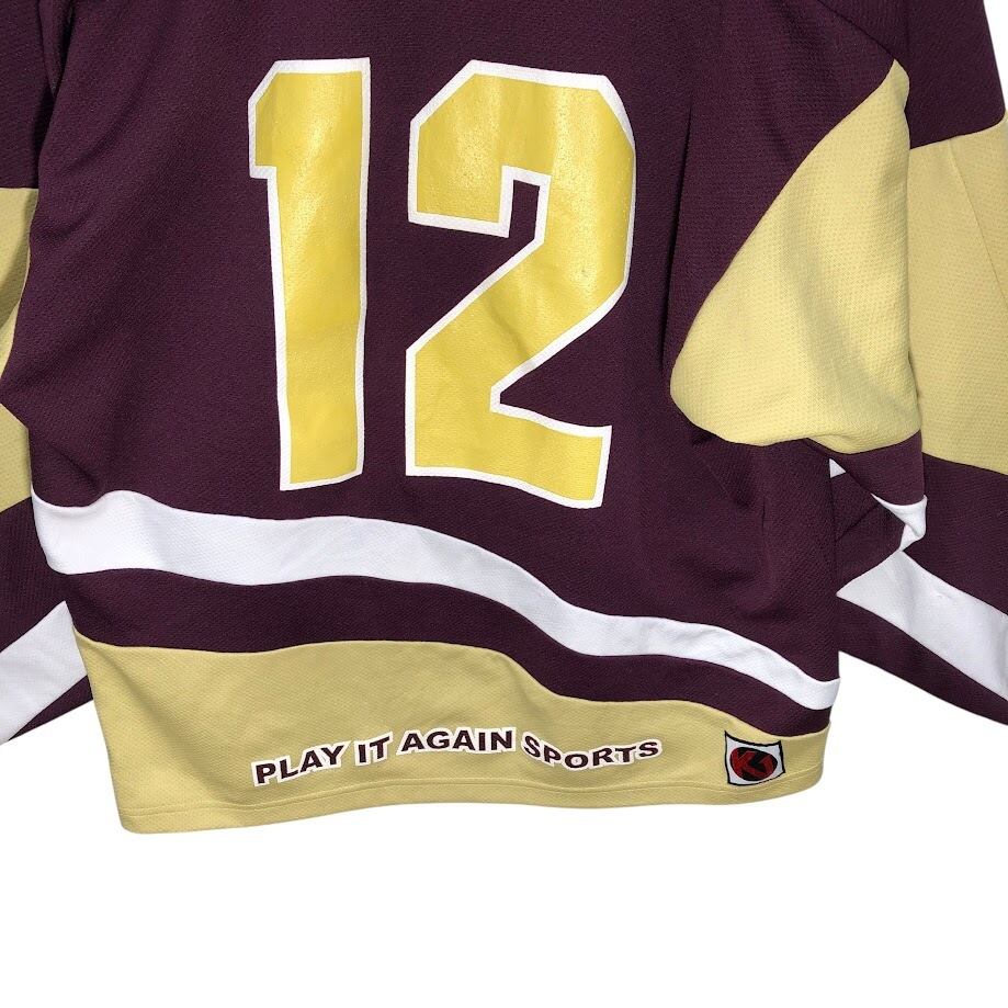 K1 SPORT SWEAR PLAY AGAIN SPORTS 12 ゲームシャツ アイスホッケー チーム スポーツ 半袖 tシャツ フロントプリント 刺繡 バックプリ刺繍 オーバーサイズ Vネック USA製 Mサイズ ボルドー