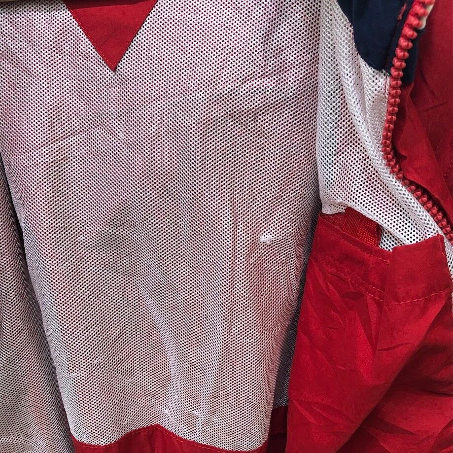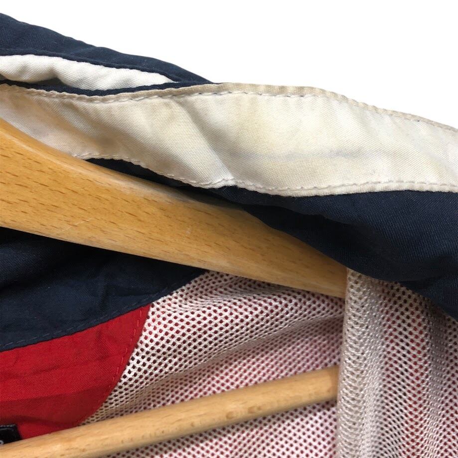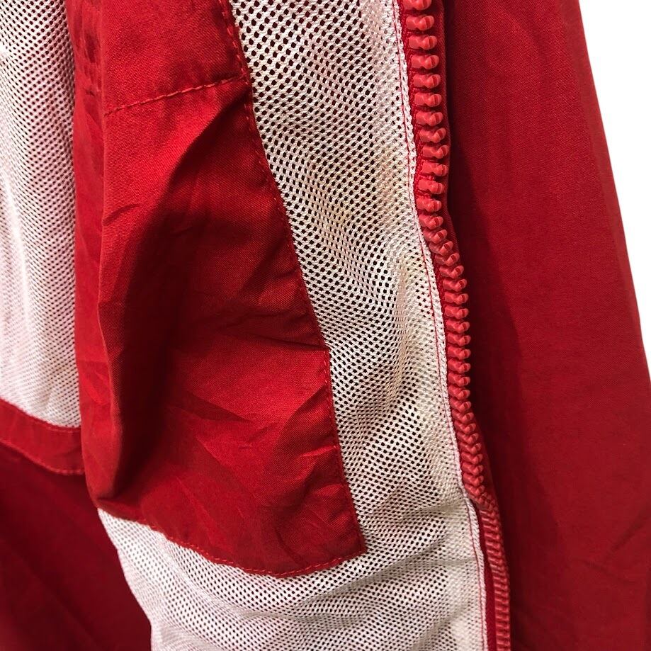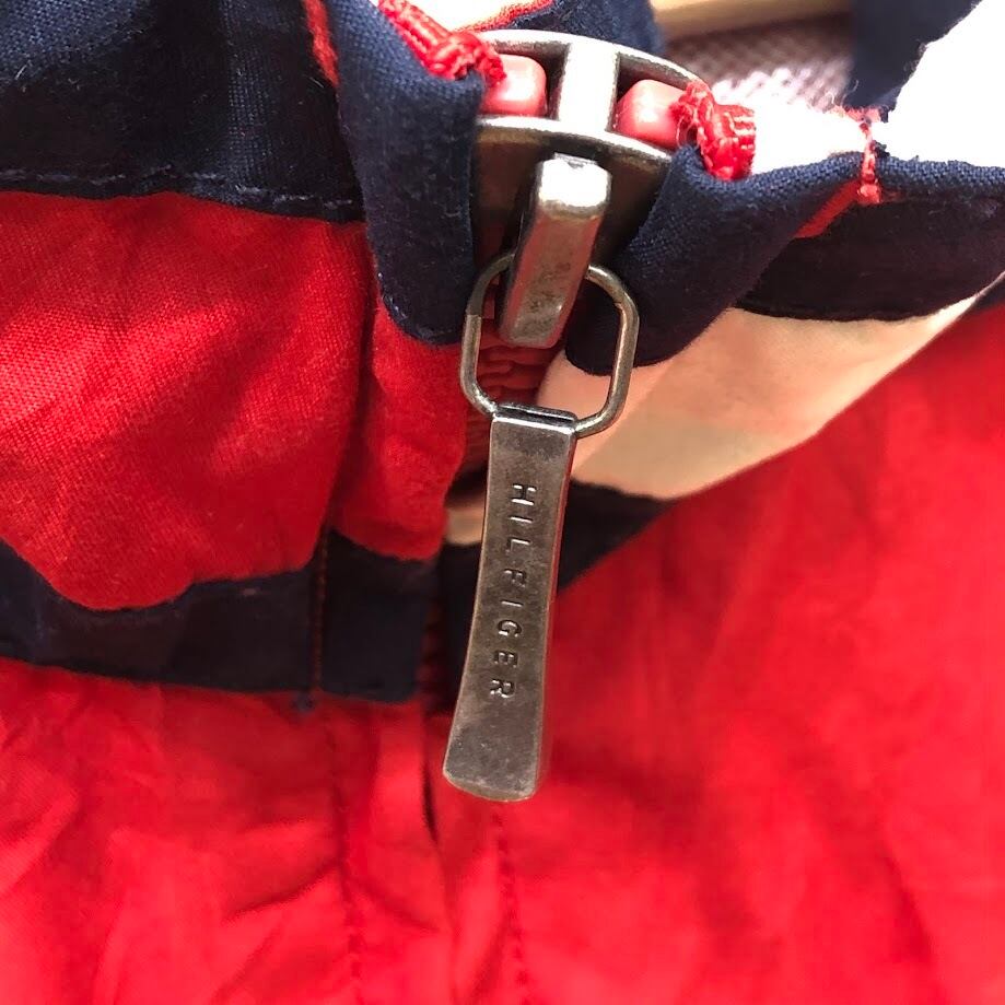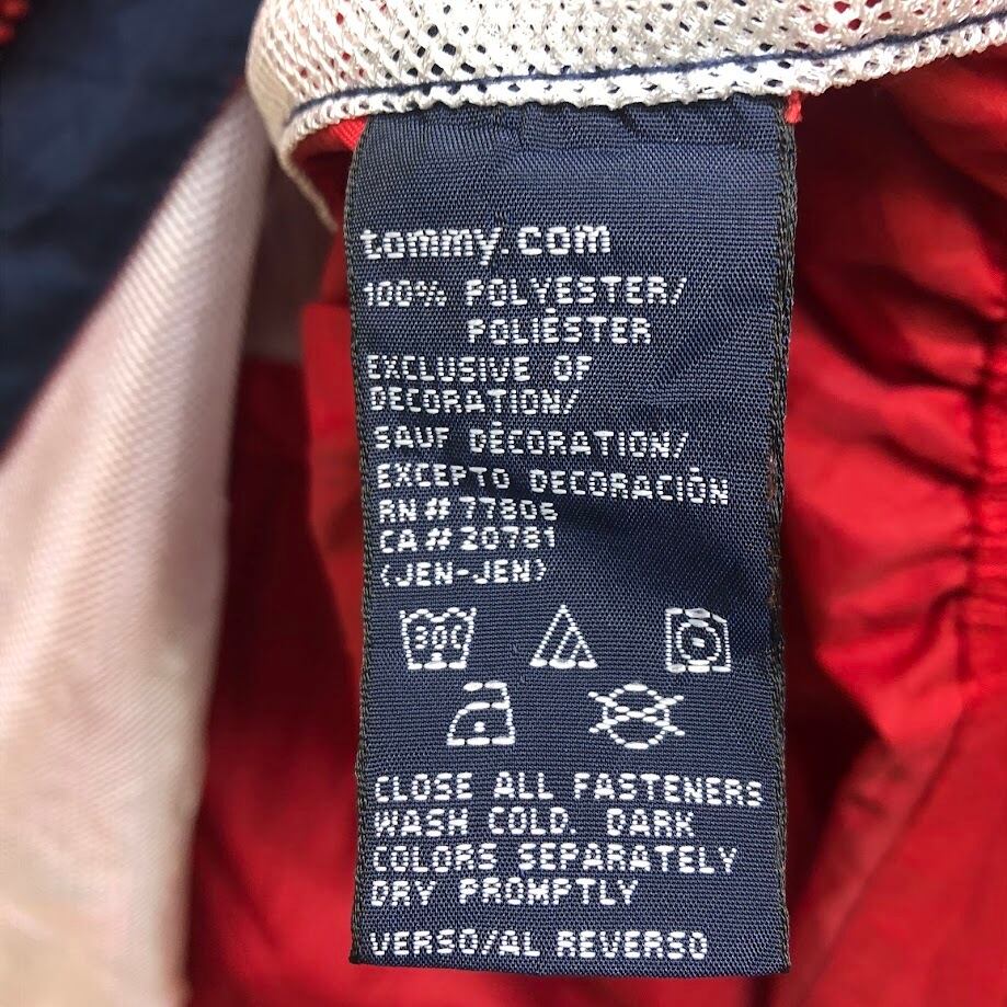 商品名:TOMMY HILFIGER トミーヒルフィガー 00年代/00’s フルジップ ジップアップ フード収納 ライトアウター ナイロンジャケット 長袖 ワンポイント刺繡 Philippines製 L/Gサイズ レッド