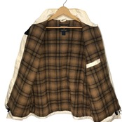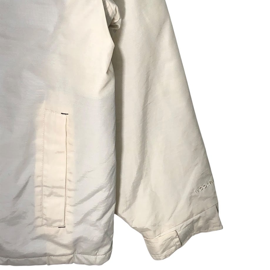 商品名:WOOLRICH ウールリッチ タータンチェック ブルゾン ドローコード 中綿 アウター 長袖 袖刺繡 ワンポイント刺繡 オーバーサイズ THAILAND製 Lサイズ ホワイト