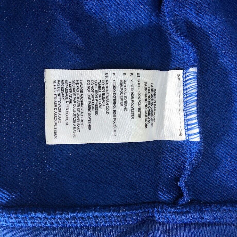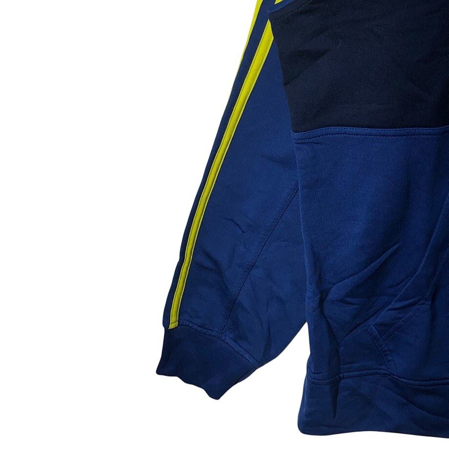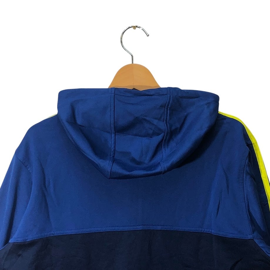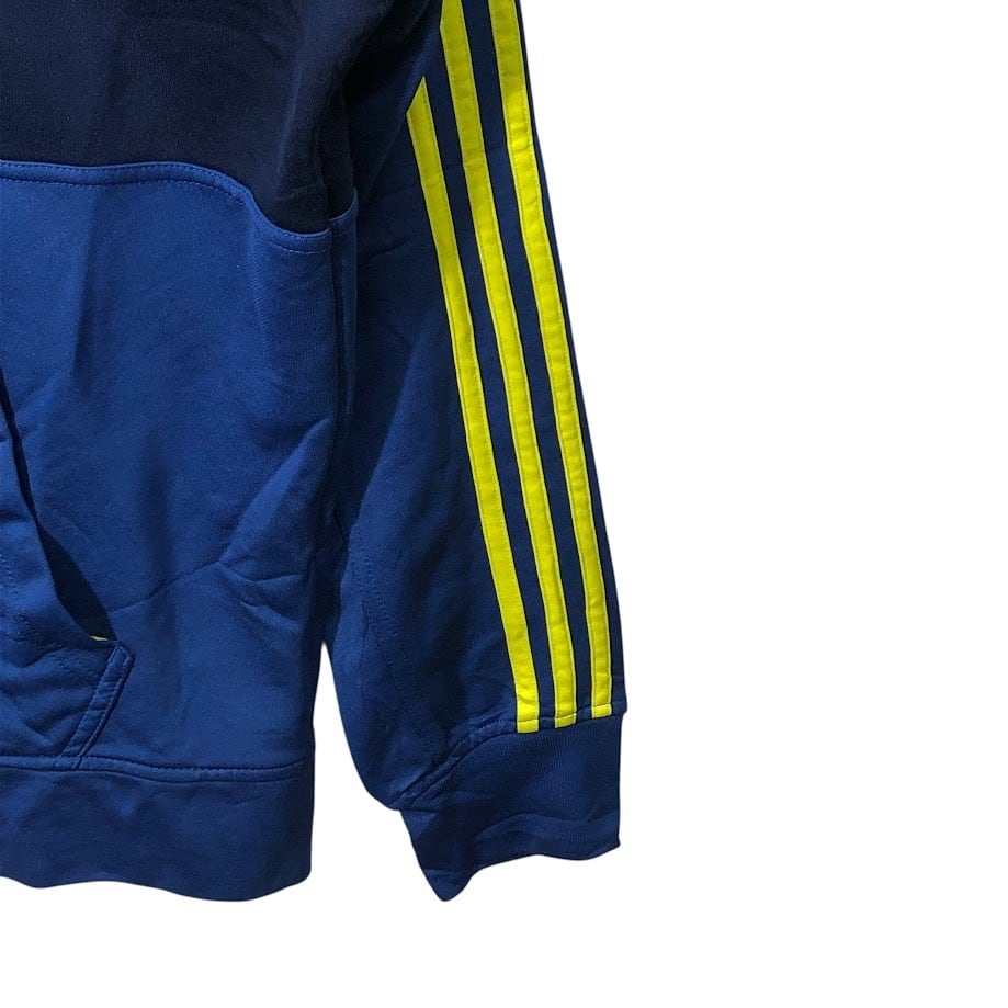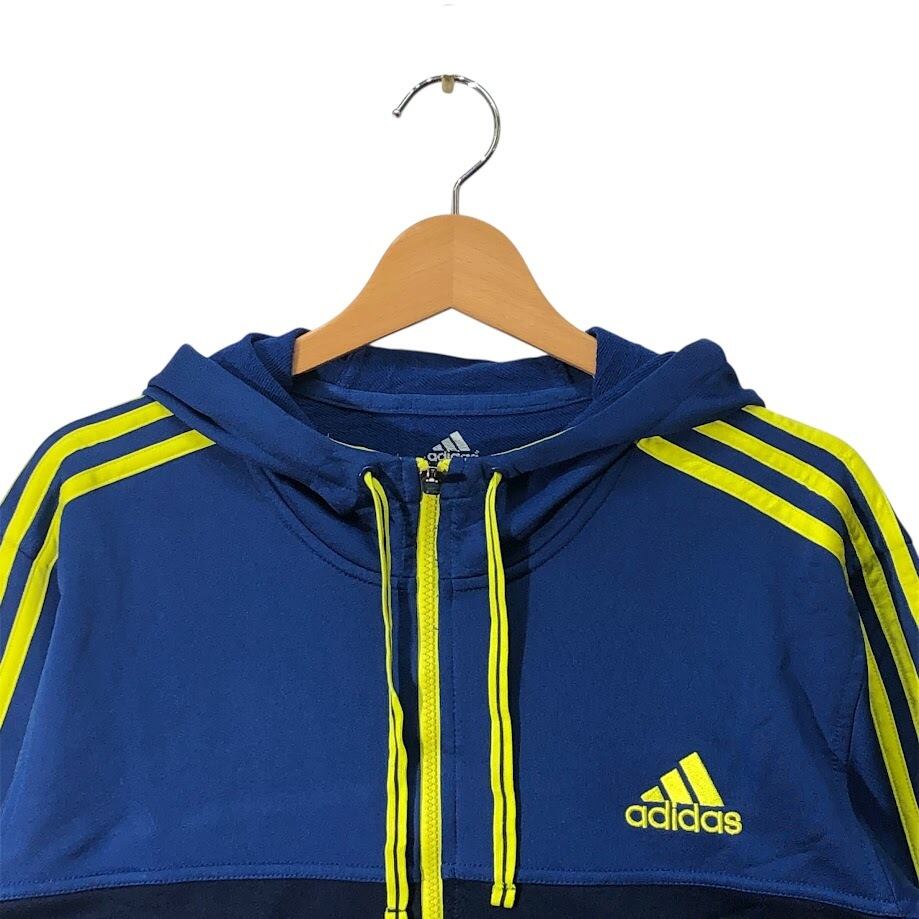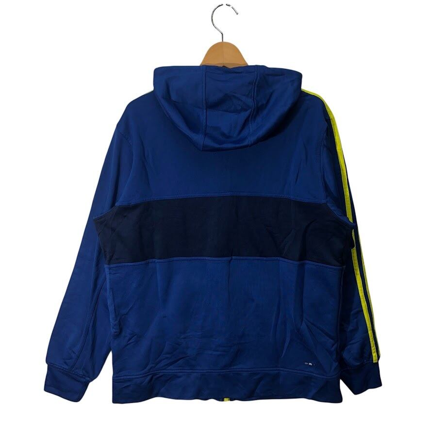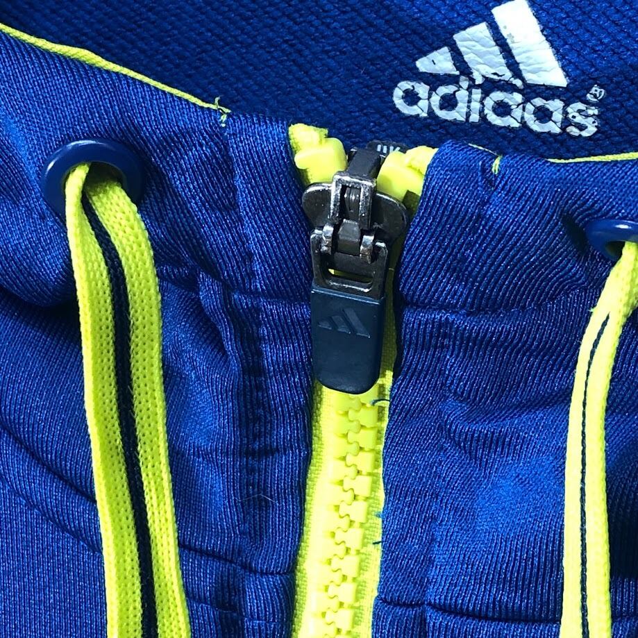 商品名:adidas CLIMALITE アディダス トラックジャケット ジャージ フード付き スリーライン ロゴ刺繍 カンボジア製 Lサイズ ブルー イエロー